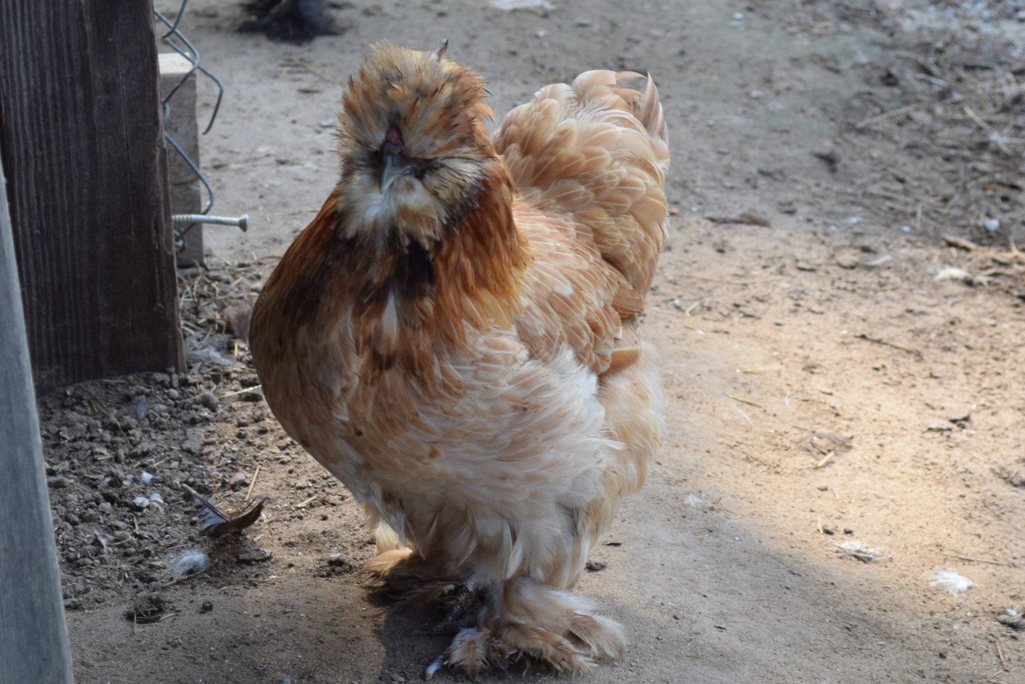 Black is black all over, and the feathers are dark all the way down the shaft. Here's my black rooster: