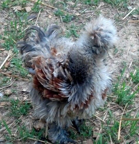 We obtained 2 sizzles which are about 4-5 months old now. Ember is the dark frizzled and Misty the smooth feathered.