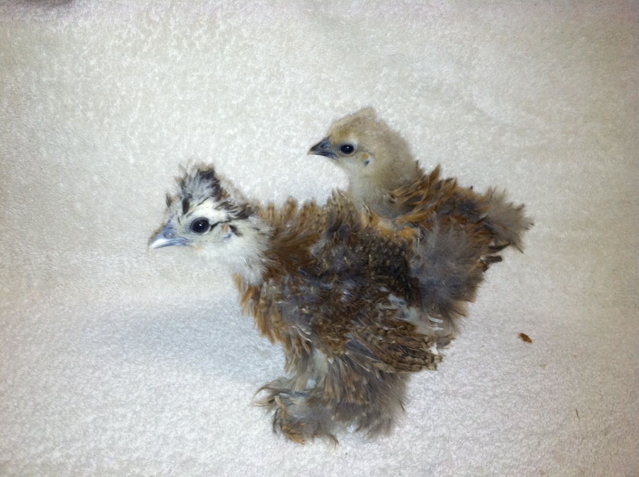 In about 2 weeks you have a good idea of what feather type each chick will be. If mine (I hatched 60 chicks so far in the last 6 weeks with one last batch going into lock down tomorrow night, so 75 sizzle chicks) did not/ does not have barbed smooth feathers or barbed frizzle feathers, I gave/give them away as pet quality. Out of the 60 that have hatched, I kept I think 20 chicks combined, frizzled and smooth. I'll grow these out a little more and cull down to about 4 or 5 that I will keep as breeders for next year. This Spring should be a lot of fun for me if I end up with a nice smooth feathered male!!!