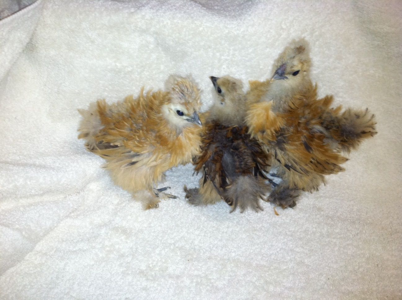 I'd like to get frizzled barbed feathers. My roo is getting old too, so I would really like for him to produce with a regular silkie and produce a barbed feathered sizzle