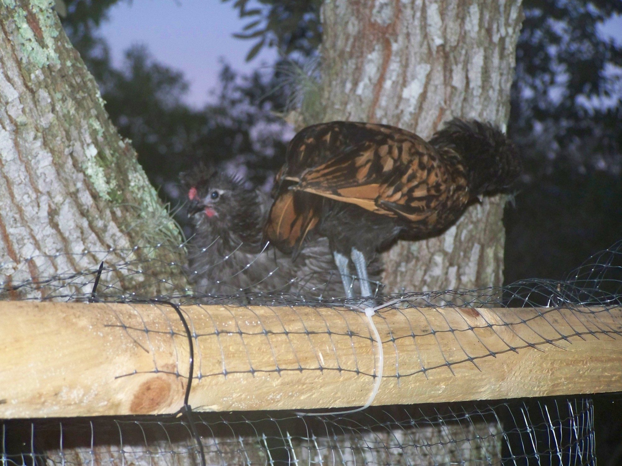 Him, his cohort "and constant companion" Jay jay the polish and the silkies are all in this one until I get the tops completed thinking that the sizzle and silkies can not fly that far up.