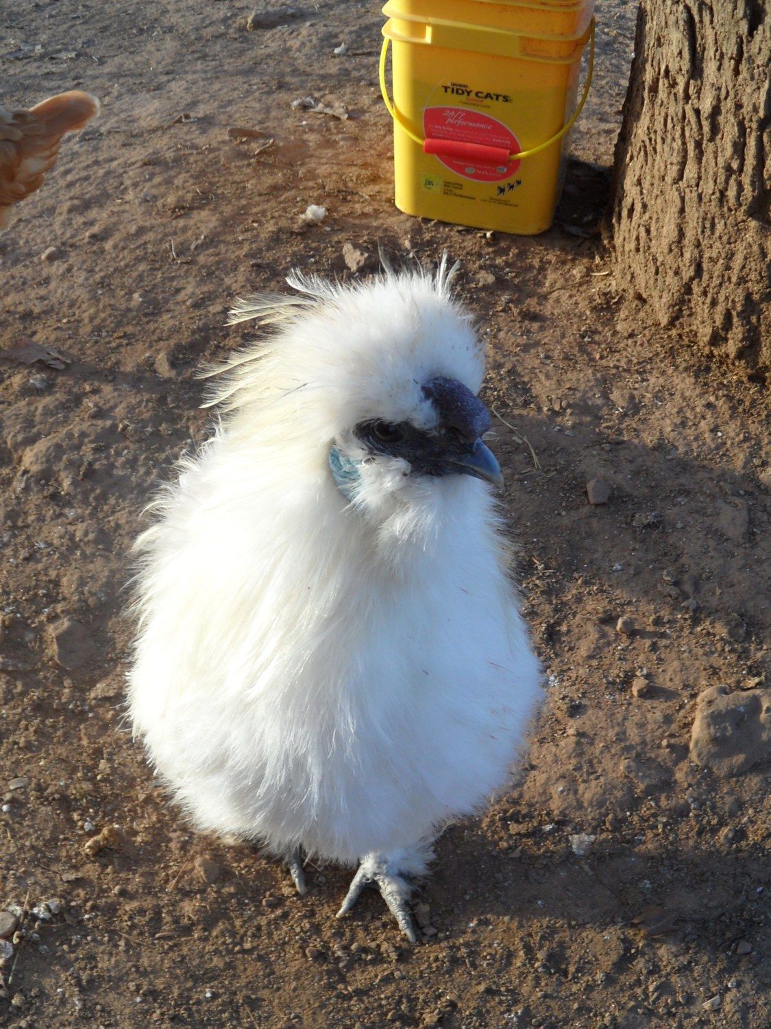 Hey everyone. I am new to chickens and sizzles and have a few questions I was wondering if you could help me with. First I will tell you a little info on my chicks.. I have three chicks that were hatched on Oct. 1. I was told one parent is a Silkie, and the other parent is a Frizzled Cochin. They all have five toes, feathers on their feet, black eyes, skin, and beak (although the white one has more of a charcoal grey skin color and developing yellow on the tip of the beak). They are all from the same parents, and I was told that their colors are black, grey, and white. I am assuming they are all girls for now. The black one is named Lois, the white one is Leela, and the grey one is Peggy. Now for my questions.. I will post the pictures after my questions. I apologize in advanced if I don't say the correct term for things. I am still learning