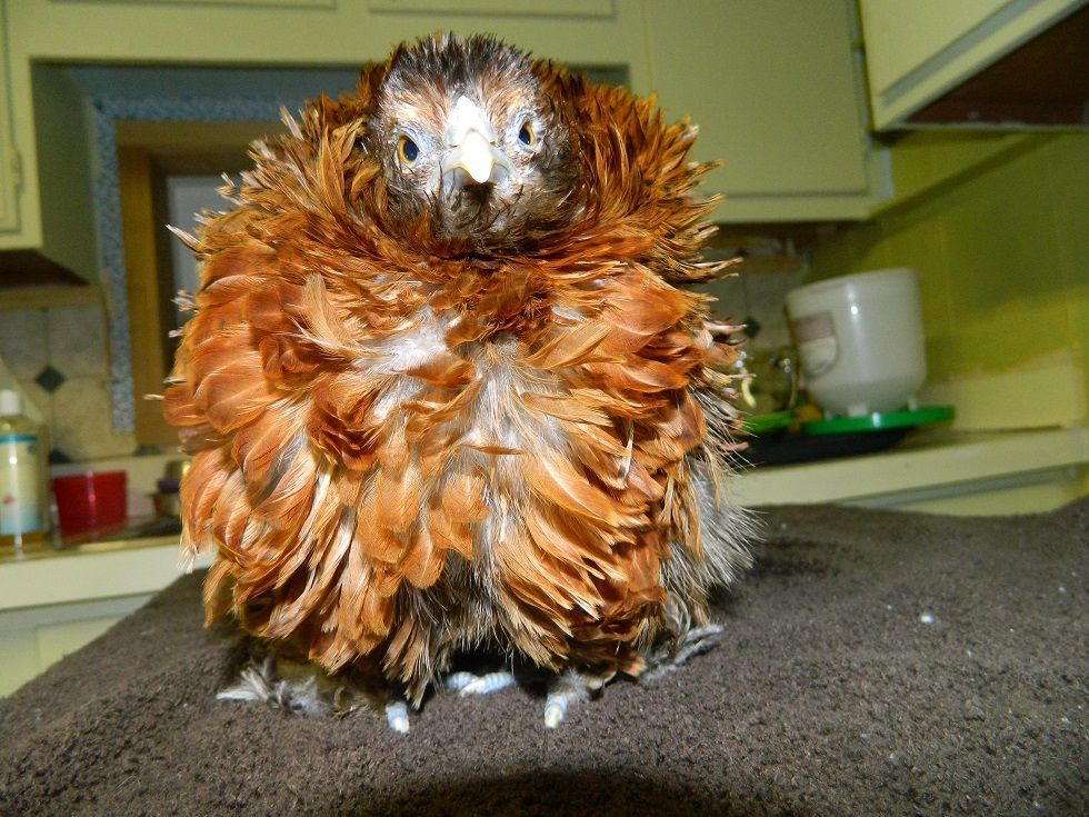 This foot belongs to one of my cute little Sizzle chicks. I wanted to hatch some eggs and my frizzle Cochin hen was the only hen laying due to a really awful bout of super contagious broodiness. I only have a Silkie rooster, and this was one of 4 chicks that resulted. What really surprised me was every chick has been identical. Black down, these amazing feet, black skin, beards, ect. I was expecting to get some with light skin and pigment holes, but Nope. They look just like a baby Silkie. Except for the barbed, frizzled feathers they're growing! Every chick is also a frizzle (making me wonder if my Cochin is really a frazzle, her feathers are soft and she doesn't have frazzle-pattern baldness so I dunno). Anyway, unfortunately 2 of my Sizzle babies met an untimely demise due to a first time broody, but I still have the other 2 going strong. I plan to try the initial cross again (once my Cochin hen is done brooding) to see if I get the same results. And use one of the babies to breed back to a Silkie to keep my Sizzles going (I hope that's the proper coarse of action). Could I have just hit the genetic lottery? I wasn't expecting to have one chick with all of those desirable Silkie traits, so was quite surprised when all of them did! My Silkie rooster has fabulous type, but he's got horrible color (very smutty buff). The Cochin hens type is hatchery quality at best. She's nice and fluffy, but not round and wide like a Cochin hen should be. She's also lacking in the foot feathering department. Maybe my rooster was just a great match for her. I can't wait to hatch more of their eggs!