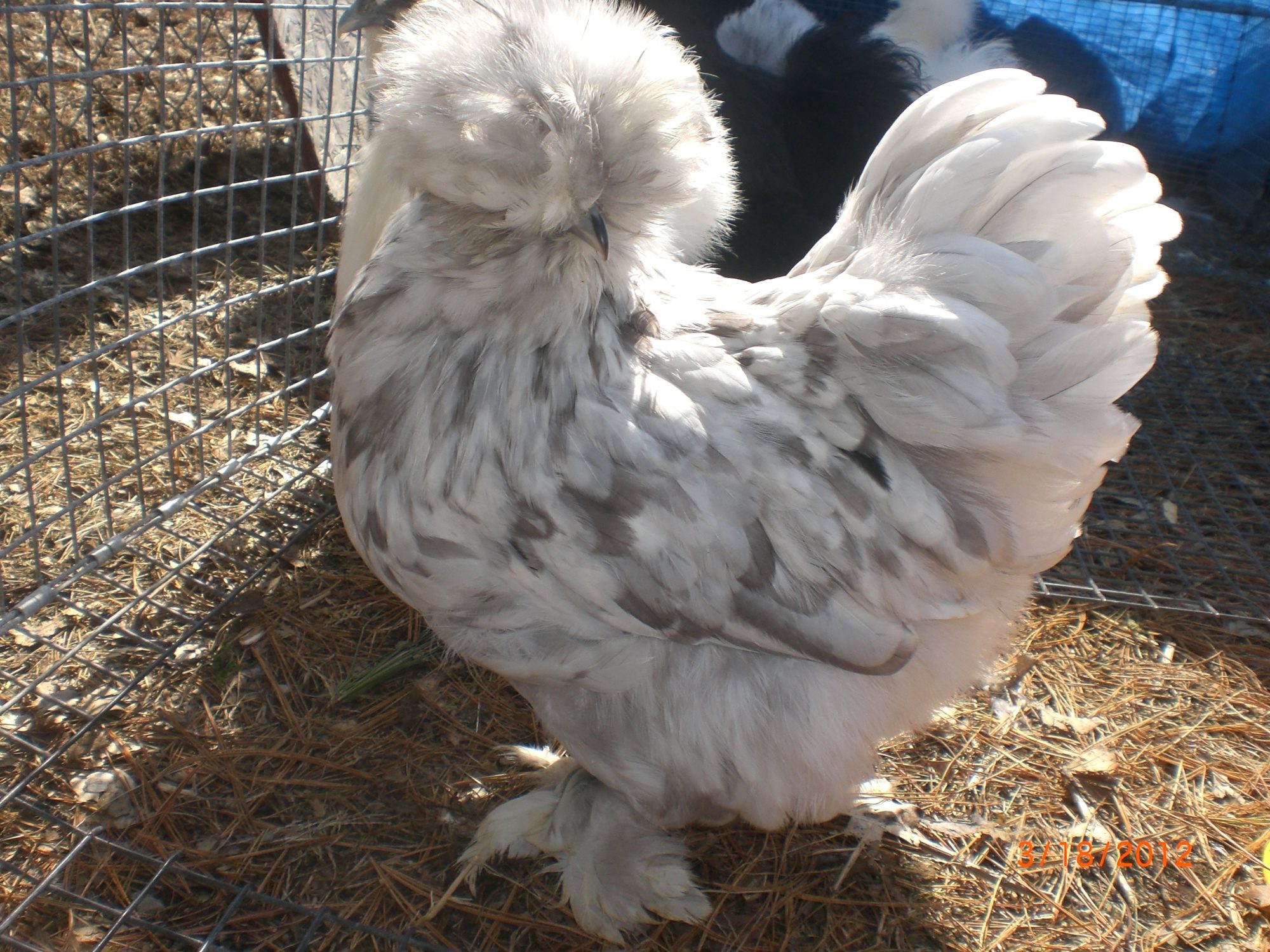 The pullet above is one of the smooth girls that is a full sister to the Sizzle girl below. I use them in different breeding pens. At this time I do not have a Sizzle roo. I need to keep one this year if I hatch one but I am trying for lavender or Porcelain Sizzle.