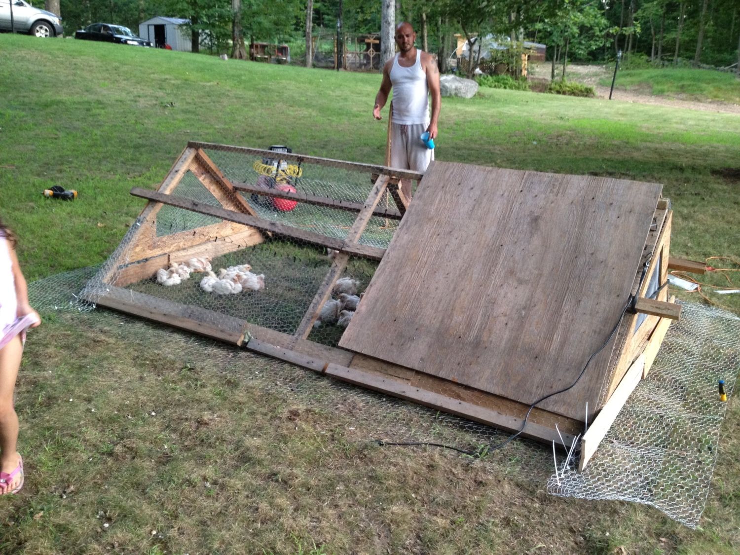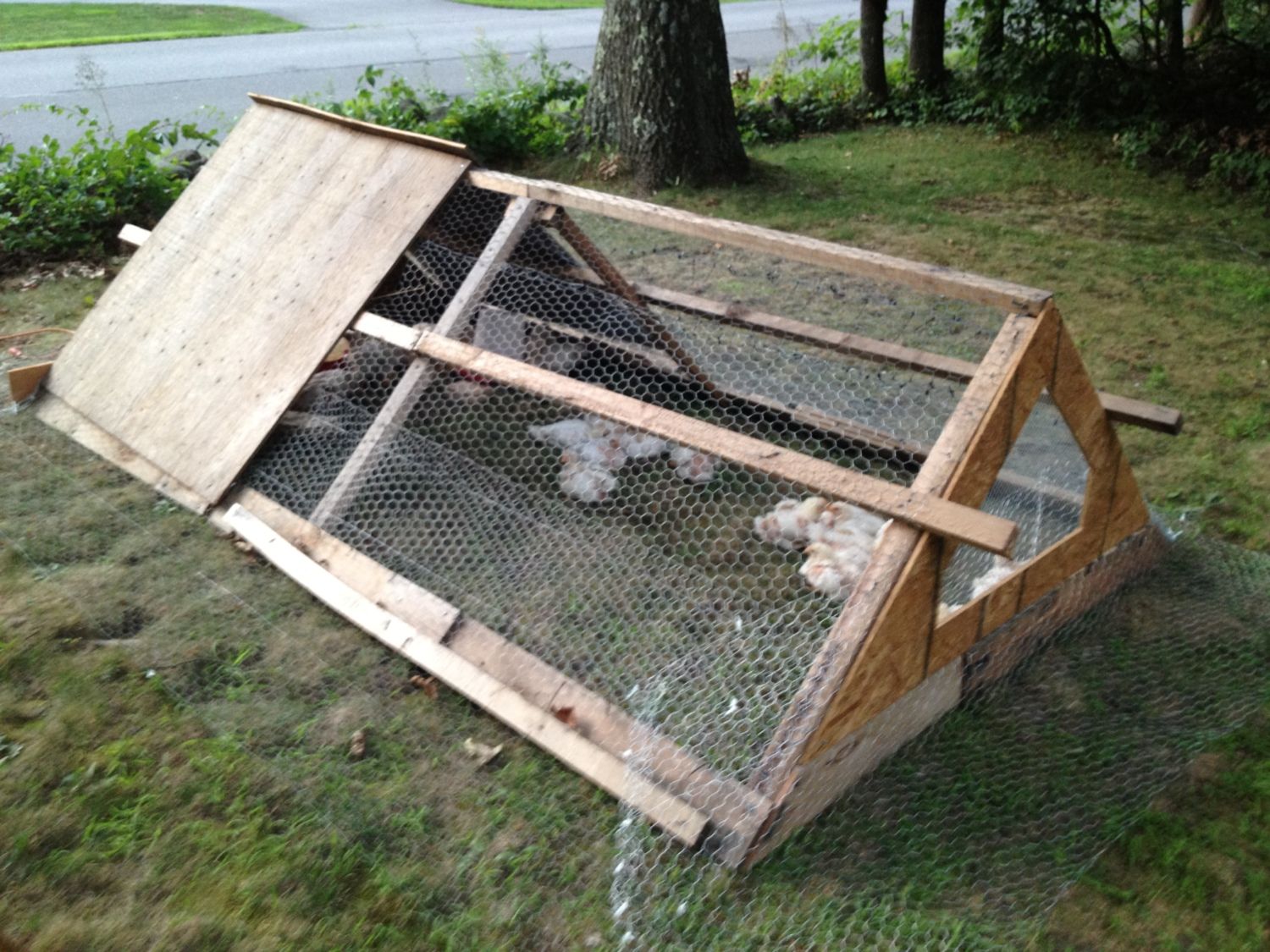 Thanks! Im happy with how it turned out. Its kinda heavy and awkward to move but I like that they get fresh grass everyday. Im still very nervous about a raccoon or fisher cat or something getting in. I wish I had gotten more hardware cloth for it but it is sooooo expensive. We added more chicken wire today around the bottom for the apron. But I think I want to add another layer on the top portion also, I may do that tomorrow.