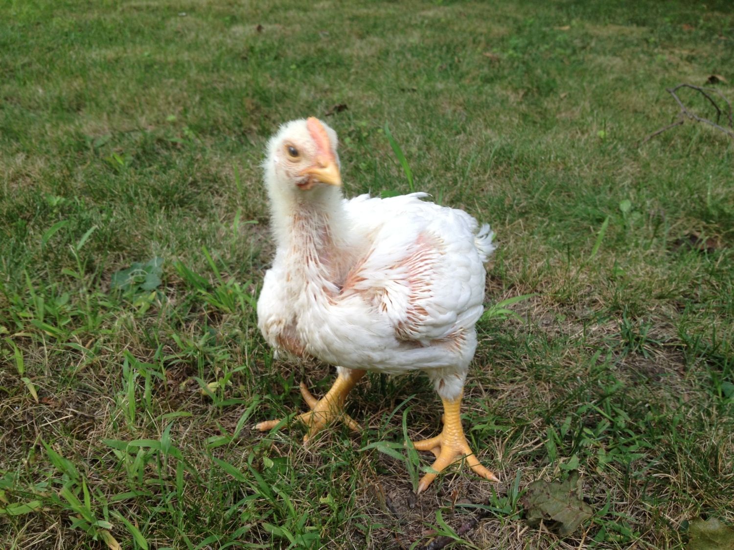 I dont have much land at all, 1.75 acres total. My house is positioned odd and its tucked up in the back corner of my lot leaving maybe 50 ft of yard on the left side of my house and about 50 feet backwards for the backyard. The rest of the yard is in the front of my house which is grass and the newly (roughtly 1/2 acre) dirt lot to the right side of my house we just recently cut down trees. That is where all the other chickens and turkeys are placed and we are working on the grading and grassing soon. We still have the other roughly 1/2-3/4 acre wooded. Sorry that was long and probably more than you wanted lol. So they are just going to be moved around my front yard daily. The grass looks kinda gross, not like I was imagining when I was thinking this plan thru, Its caked with poop and looks like its thinking about dieing lol. But its only for 4-5 more weeks so I expect it to survive. They were hatched on july 16th. So that puts them at 3 weeks and 2days. I feed them blue seal broiler crumbles. For the 1st 3 weeks it was 24hr feed. Now it is 12hrs on 12hrs off. They also get broiler booster in their water everyday bought online from Murray Mcmurray hatchery. Im glad they look big but I hope not too big. Im nervous about their legs. How are yours doing. Do you have any updated pics?