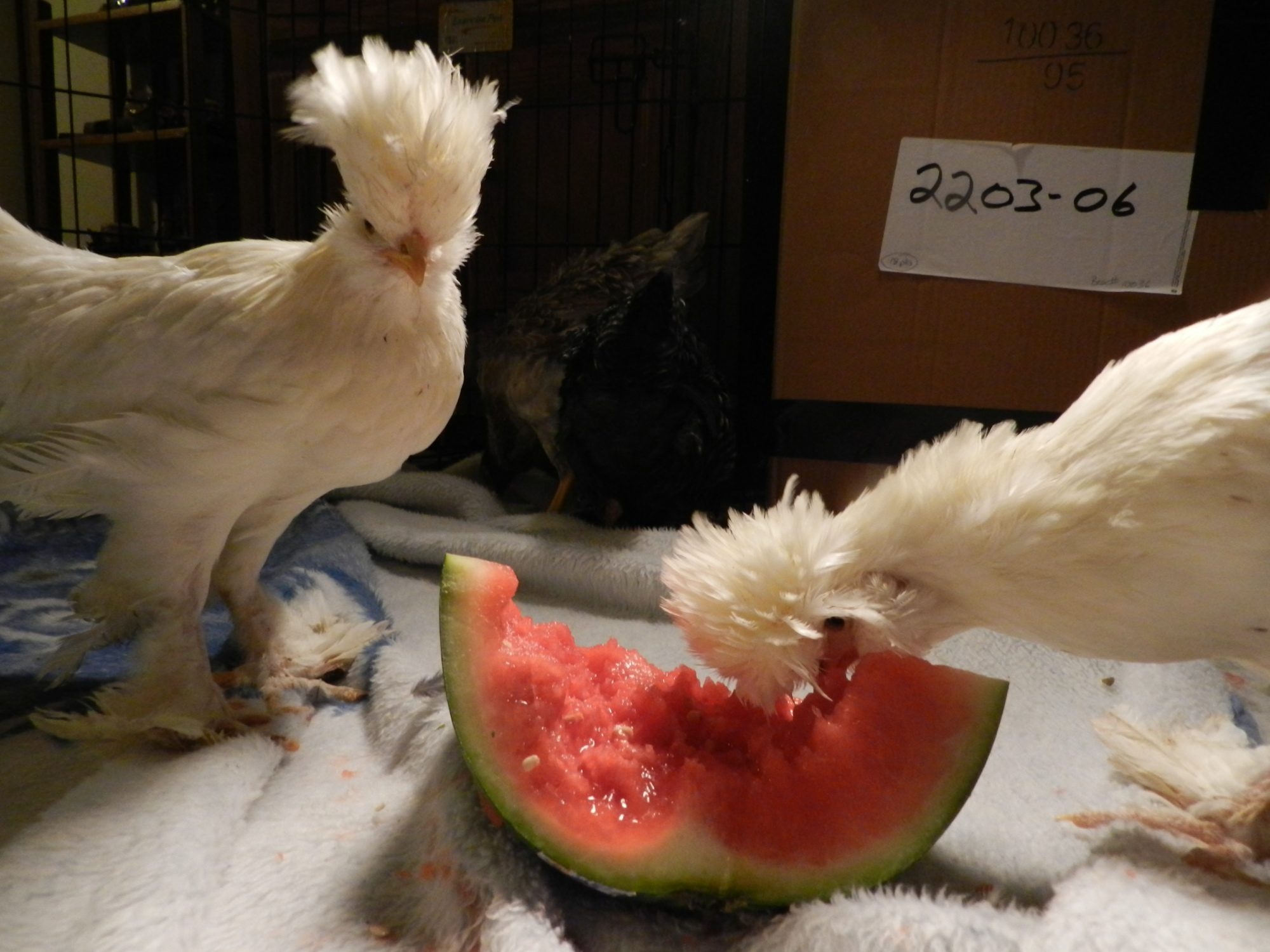 When Rocky, R.I.P, ate watermelon you'd think he'd almost gotten his wattles cut off b/c the watermelon juice looked like blood! Haha