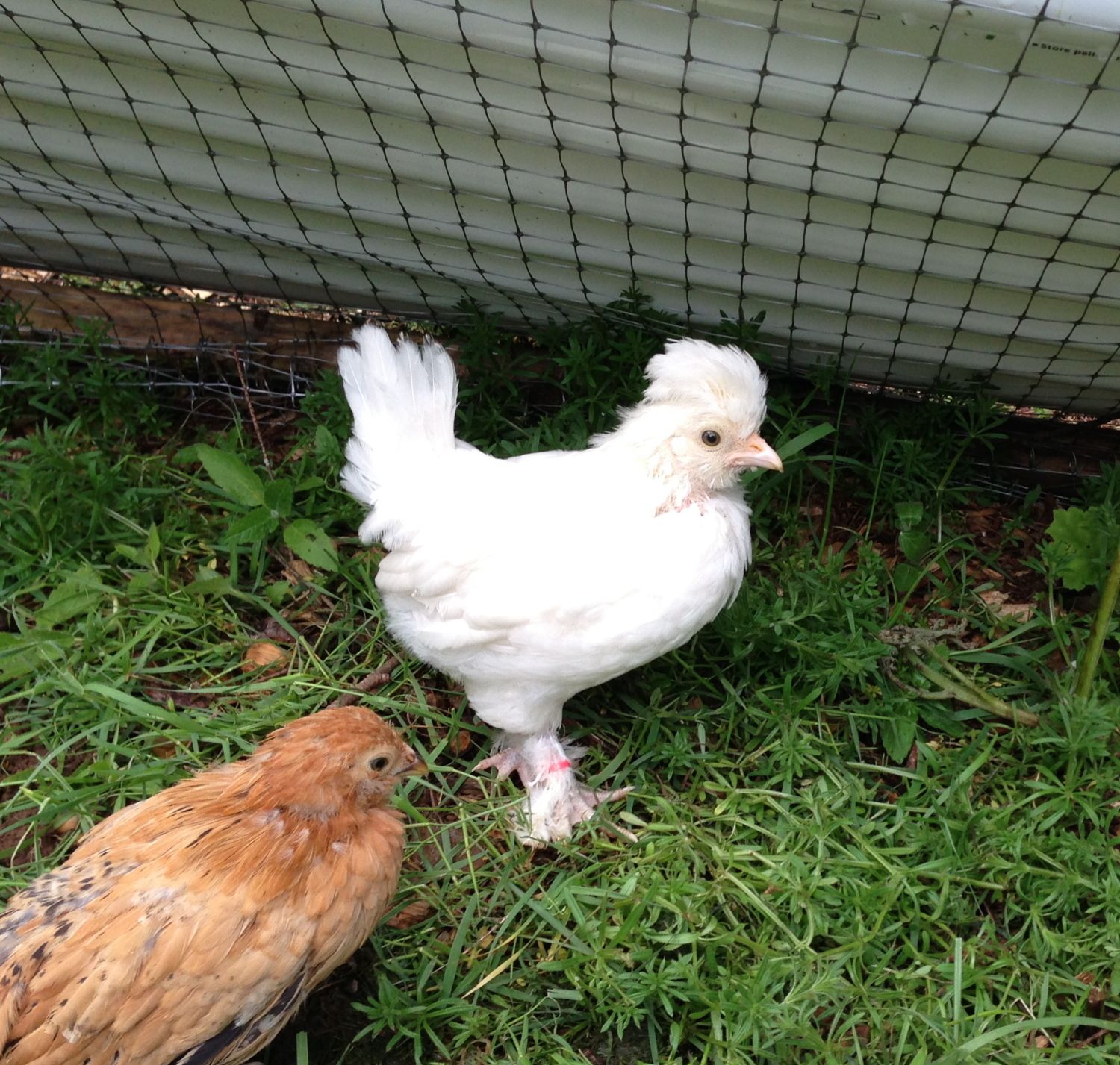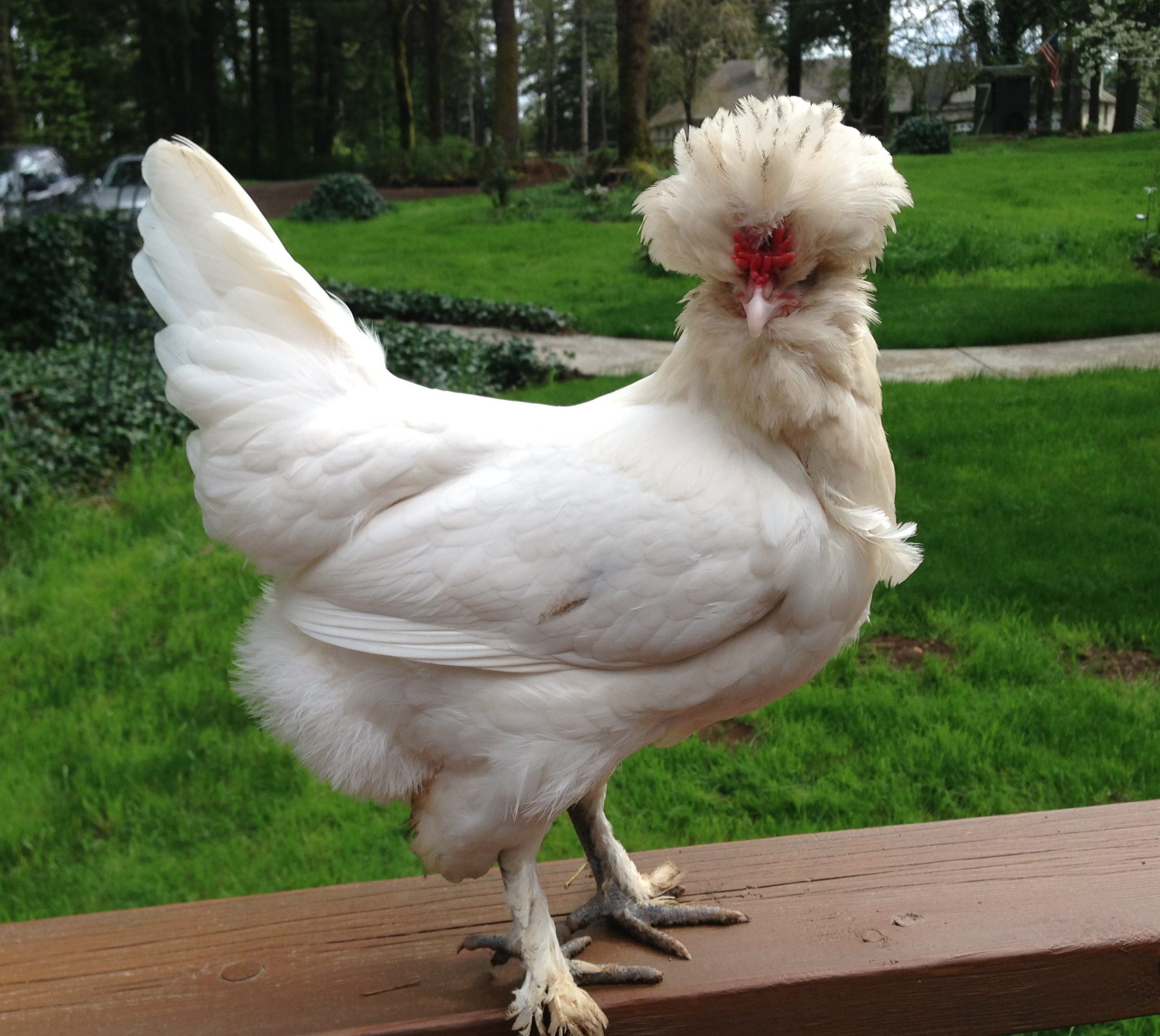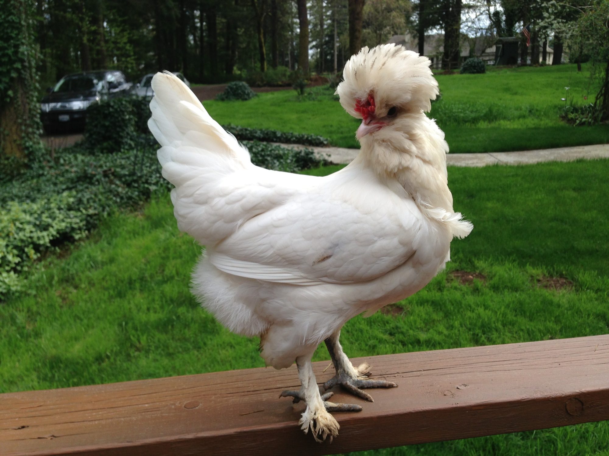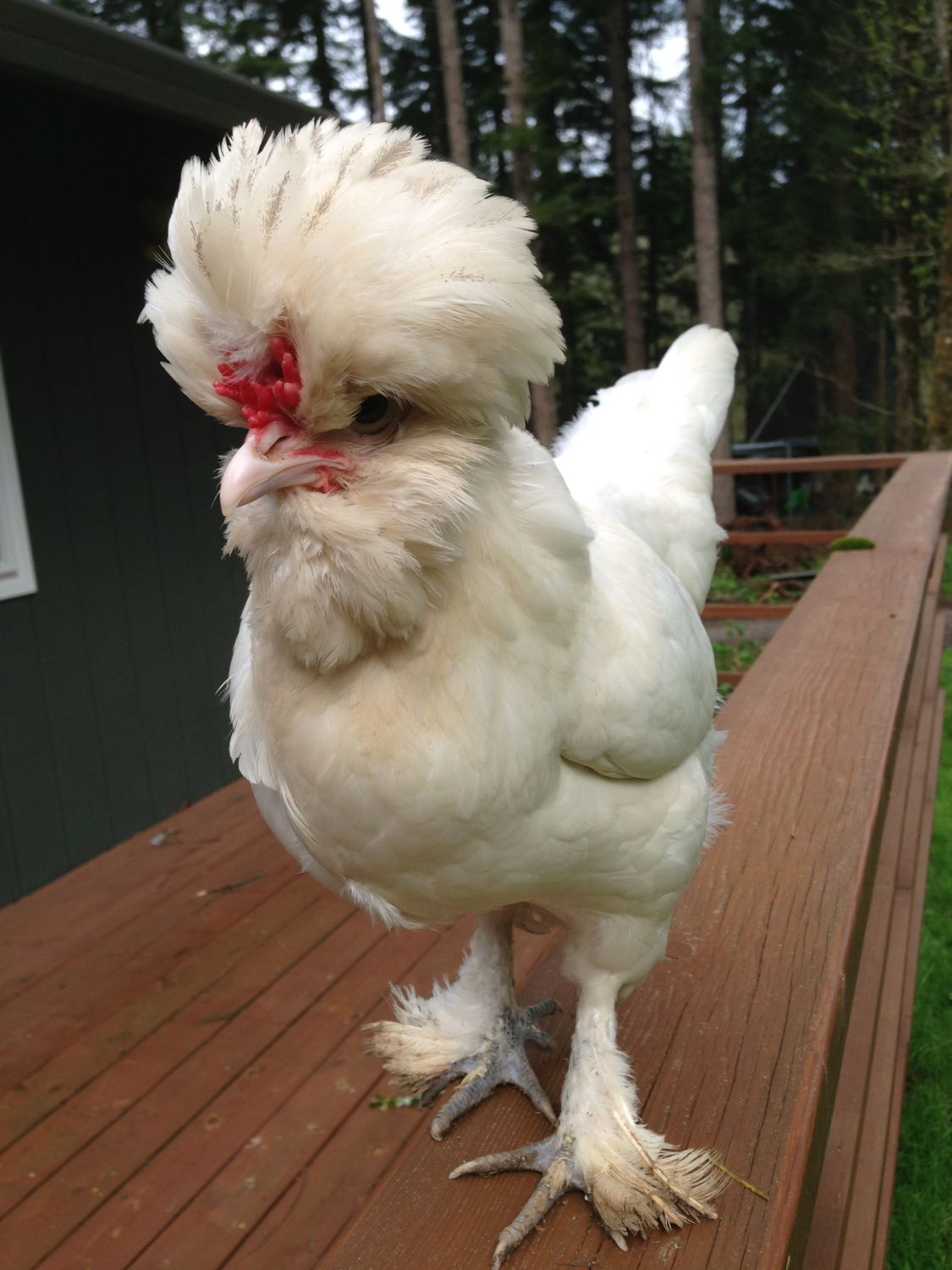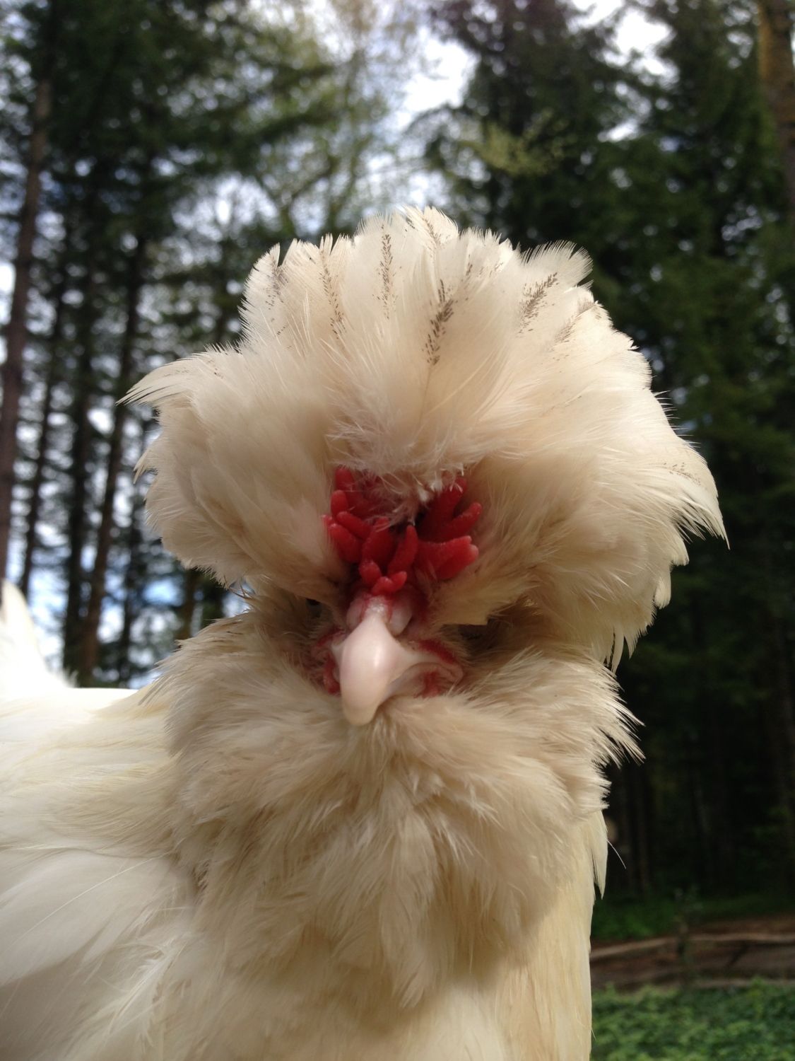 . Please excuse the flecks in her crest. My silkie roo I got rid of was a mite paradise and gaver her mites, which I've been fighting for over a month now. I think I've got them under control though, but they cement their eggs to the feathers so her head will look like that until she molts.