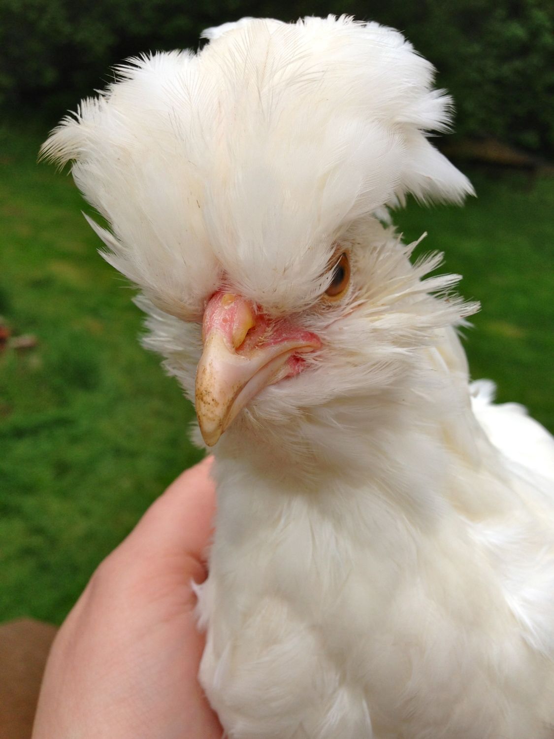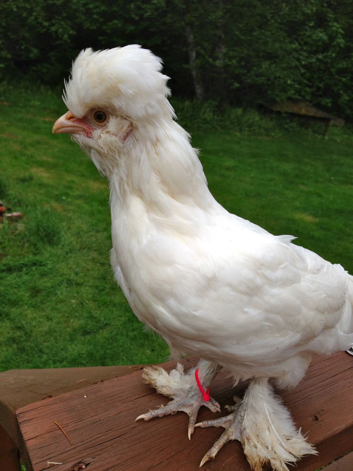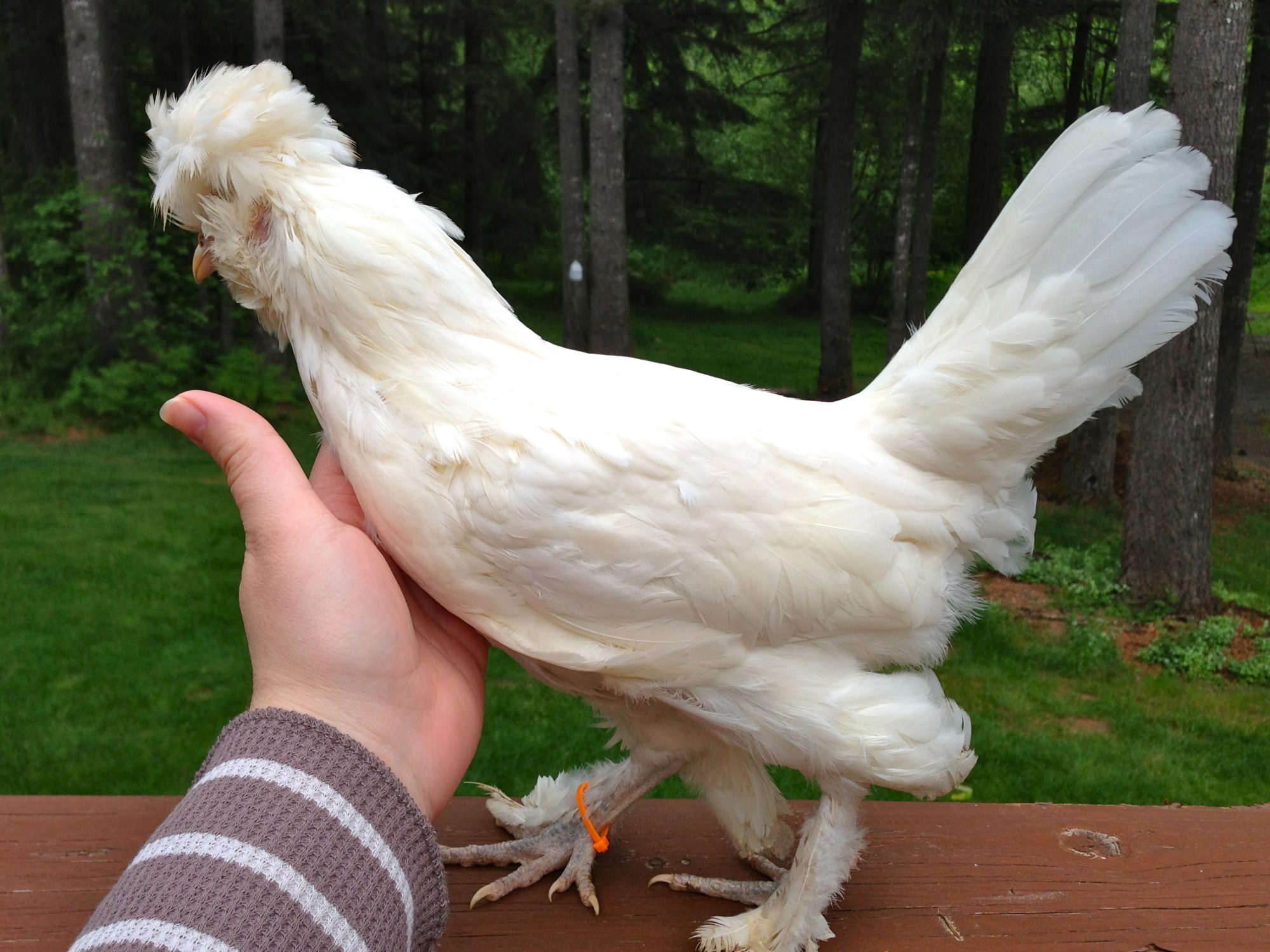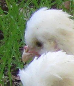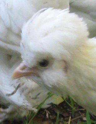 My little surprise Sultan is almost certainly a boy. His cochin siblings have begun picking on him Making me worry about what to do with him.My other small coop had a japanese with her 3 crossed bred chicks in it. She was not accepting of the sultan being in her coop. Then my son came and took all my japanese to his house but left the babies here, they went into a blue funk and quit eating for several days, just sitting in a huddle. White hen & white sultan so I put him in with the babies and he ran to them said something in chicken then headed to the feeder. Thank goodness it worked they have offcially adopted each other. Haven't posted in awhile so thought to share Lorax's story at this point in his life.