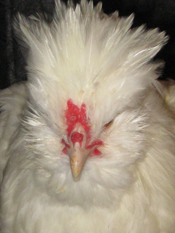 He doesn't really have horns, his comb is kind of flat topped, with just the hint of elongated corners. Note, those were the best face pictures I could find in the batch, it doesn't show the other girls with red. Most of them were facing away from me when I took pictures. The little protuberances you see on yours aren't the "horns" at least I doubt it, as many of mine had such things that just turned into weird add ons, LOL.
