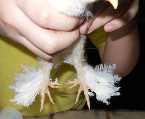 This one has just the couple spots on the back of head, and I just noticed there is no feathering on feet or legs.........no real noticeable poof on head