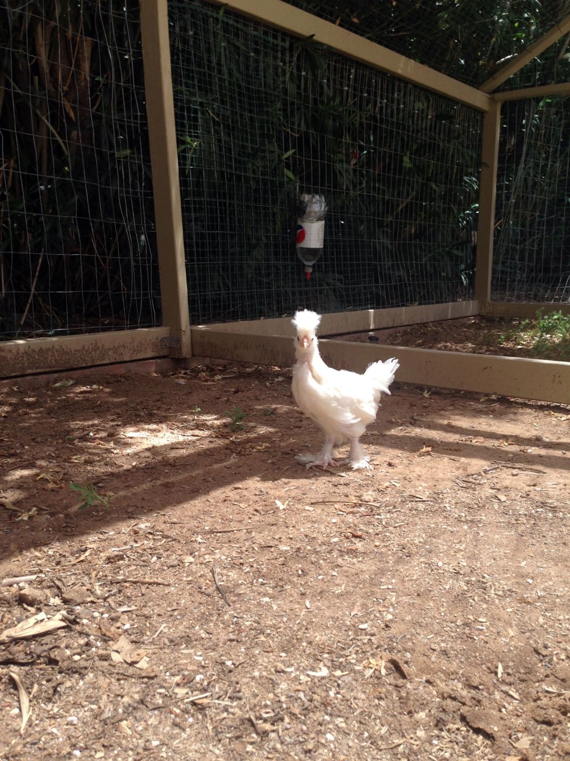 He's cooped with a Pultan(from a WCB Polish Rooster & Sultan Hen) and WCB Polish hen