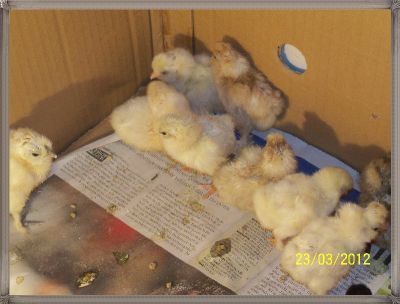 Here are the new photos. The chick is now 3 months old and is the only one of the possible males that doesn't have a reddening comb.