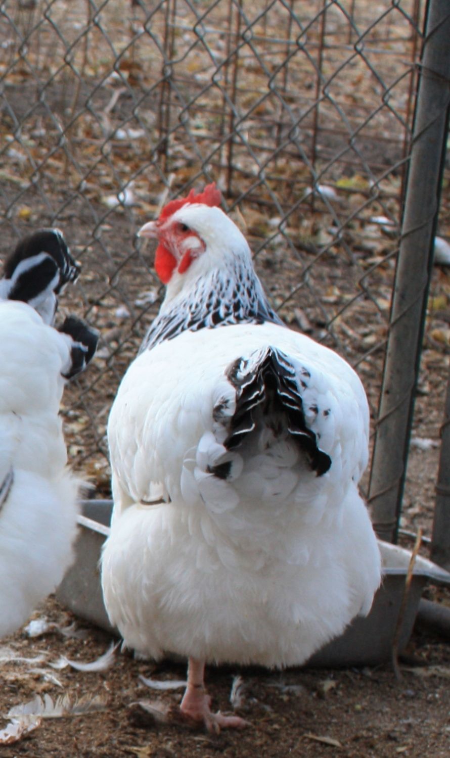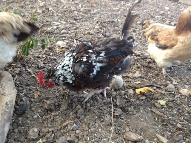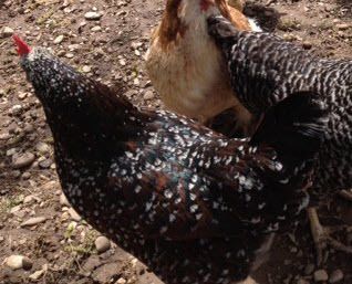 I took some pictures of two of the Mille Fleur Project Pullets and my cockerel who is younger than the pullets.