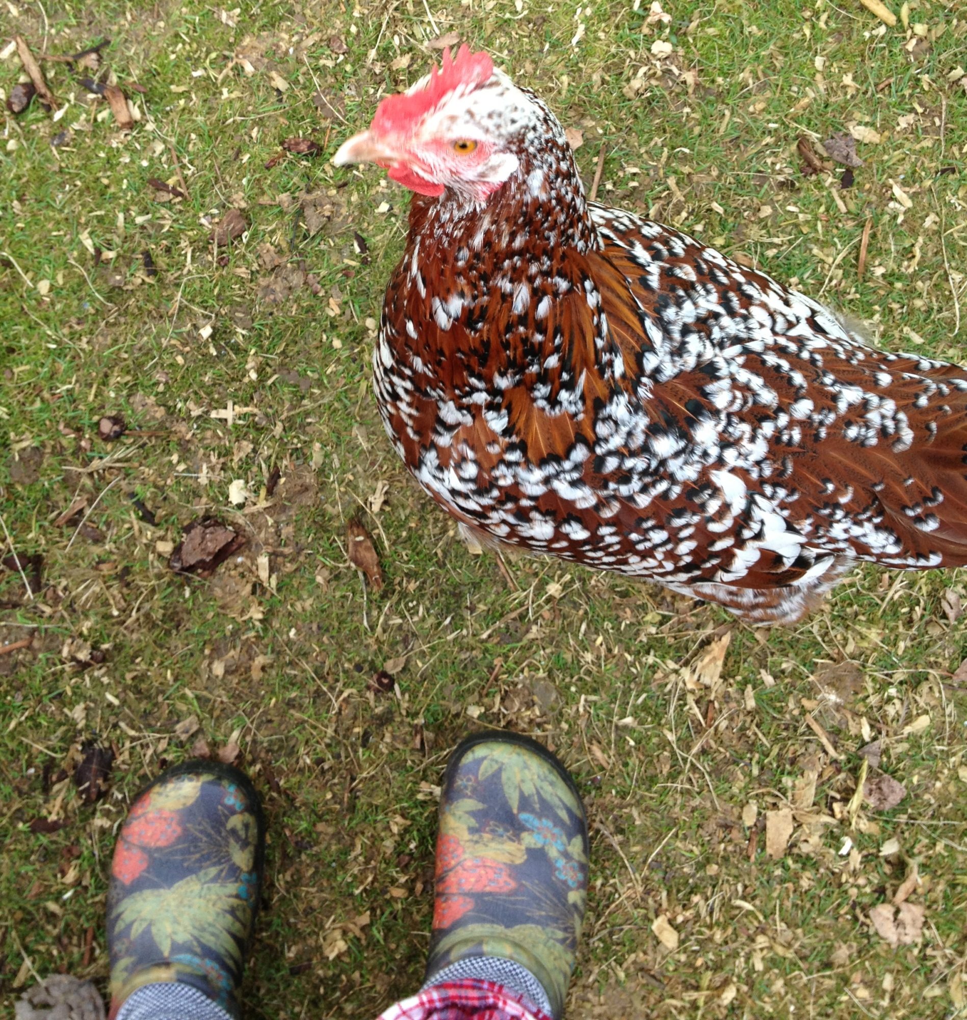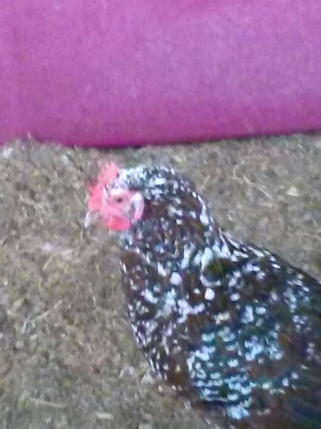 Hello! I just got a Speckled Sussex yesterday. "Susie" is about 1 1/2 years old and is much happier in her new home. There was a mean welsummer who plucked EVERY tail feather out. She must be feeling fine because she gave me an egg today. Seriously. I was standing by my coop/run and she stood right next to me and laid the egg. She lets me handle her and comes whenever I come near. I hope that her tailfeathers will grow back quickly now that she's away from the meanie.