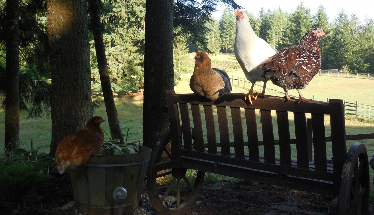 My SS pullet was always the smallest of my chicks. At one point she was half the size of the RIR chicks. She was also very slow to feather out. Now that she is 18 weeks she is almost caught up with everyone else. Here she is this morning with her buddies the Red Star, Ameraucana, and White Plymouth Rock. She's not as tall as they are, but she is rounder.