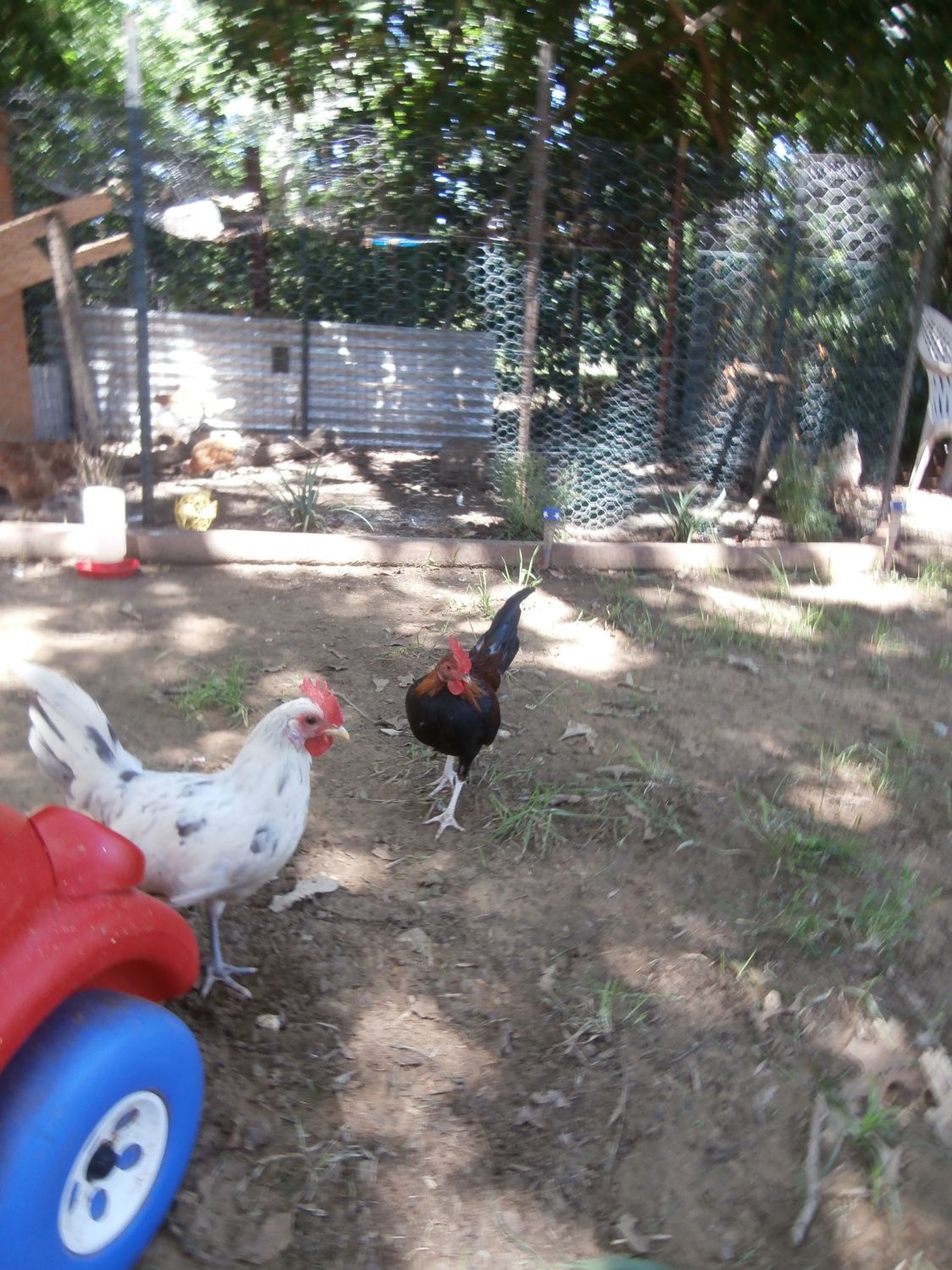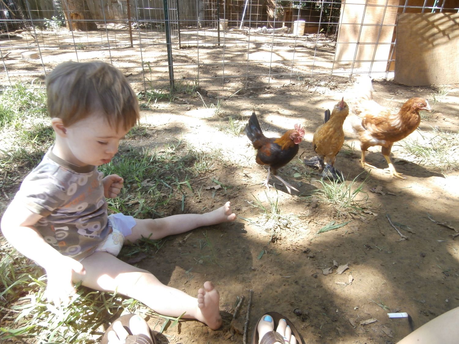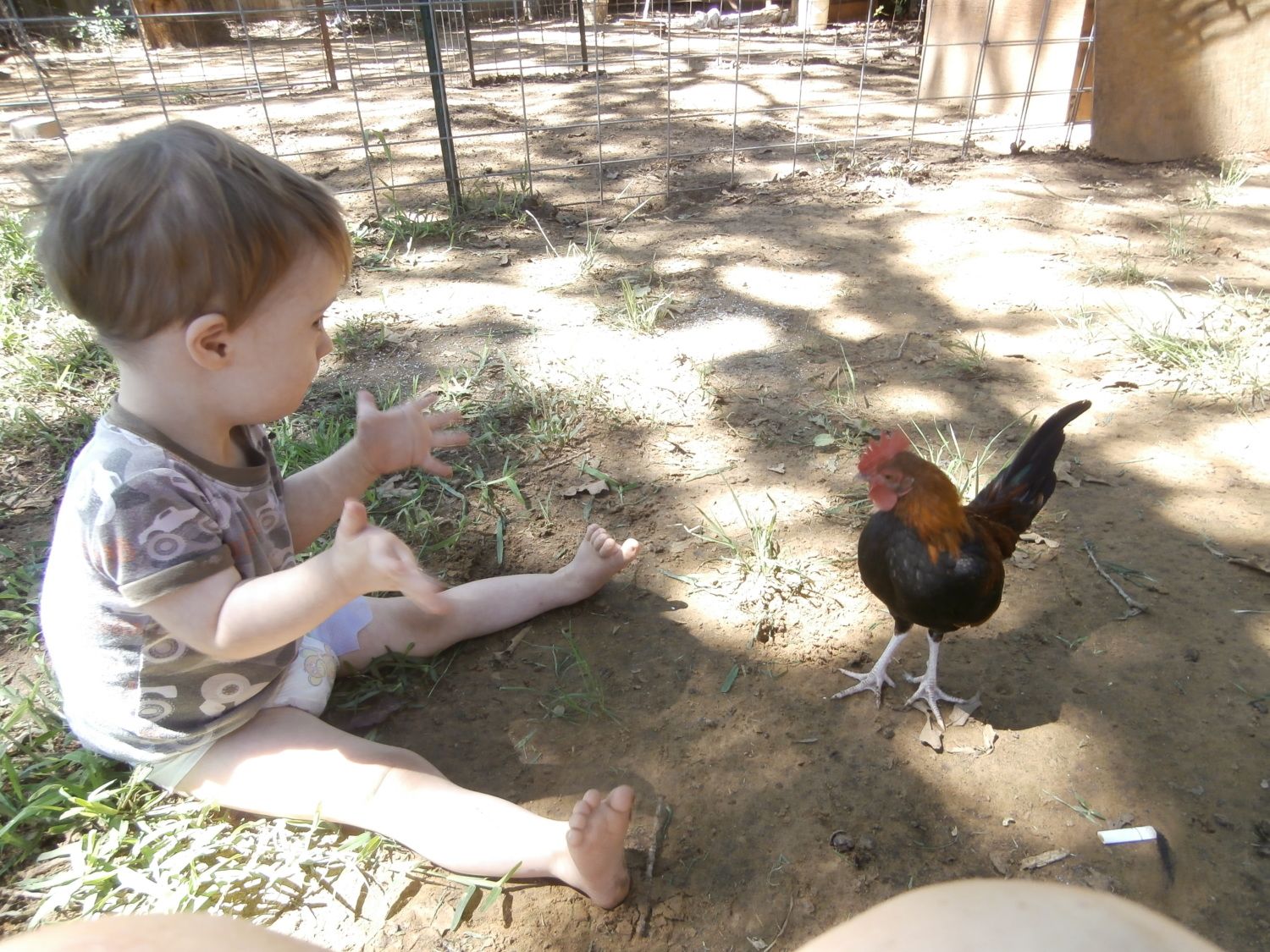 Thanks,That my 1 yr old,Andy and his little roo,Screetch. My roosters are freakishly well behavedI like that photo with the bitty banty roo with cute little boy. I hope the roosters are well behaved. It is nice to be able to chicken watch from the kitchen table.