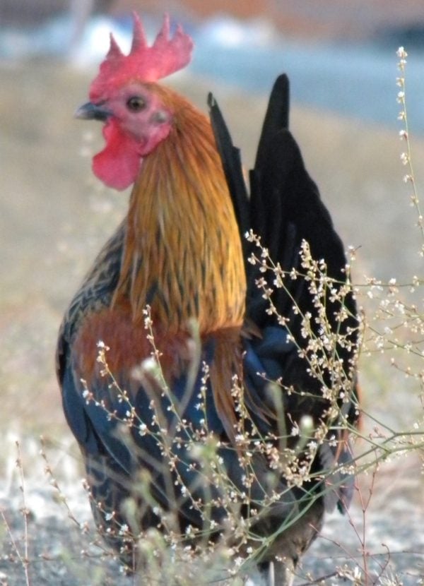 Sir Banty, an OEGB RBB with a quail chest. He's the proud leader and spunky tiny protector of a flock of 83 PR RIR and a Partridge Cochin. It's amusing to see the little fellow peacefully master his much larger flock members by freezing in place and giving them a "stare down" until they back off, whimpering. Frankly, I'm surprised they haven't caught on by now yet. lol