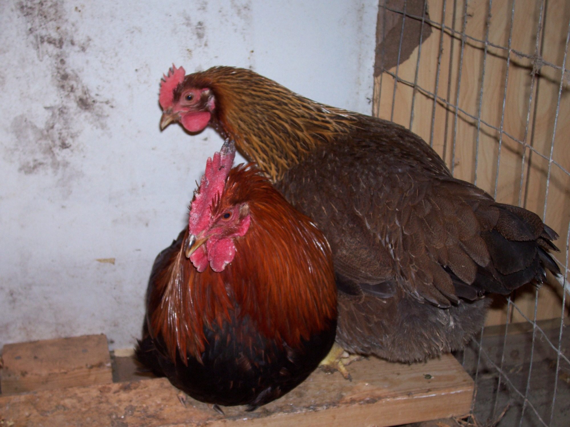 These are 2 of my Welsummer's. If you remember I asked about this boy having wry tail. He wasn't in the breeding pen when I collected Bobbi's eggs. I have one with a nicer tail in there.