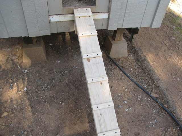 Project Wellie broody was in full force today. Had to build a ramp that her babies can hopefully use. I misjudged the rise/run a bit, but I think it will still work. I wanted something removable for cleaning the coop. I had some technical difficulties with the hook portion - it's not perfect, but it should work. I purposely waited until DH was out of town so he wouldn't whine about me using his power tools.