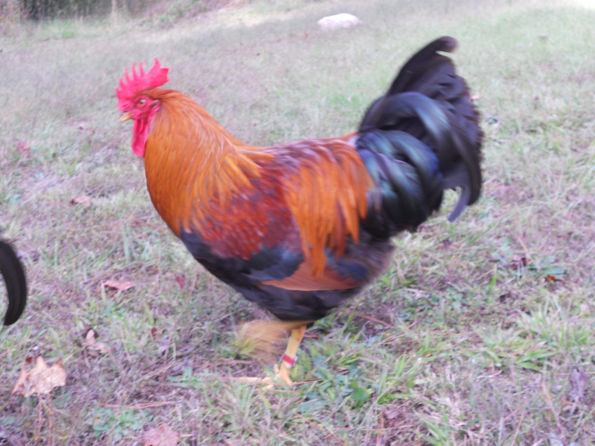 and now pic of second best and judge said difference in two that was evident was size of con and some white showing in wing feathers of second one that I call Hook. The third cockerel that I have is not show has a white conton puff at base of tail feathers so I did not take him.