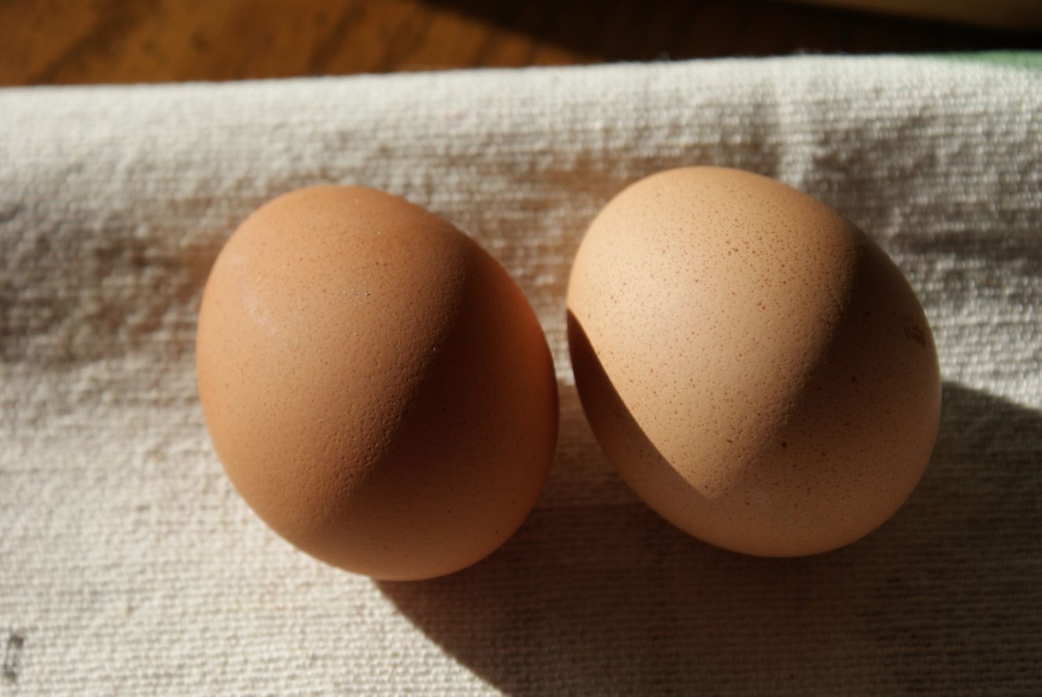 Got our 2nd Welsummer egg today! (left) and the 1st one is on the right. She skipped 2 days between them. It definitely looks to be afew shades darker than the first one and both have fine dark speckles. Do new layers generally start light and darken over time? The first egg had blood on it, but today's did not, so hoping all her pipes got cleaned out and she's ready to roll. They both are generally close to the color of our Barred Rock's eggs at this point. Hope they darken a bit as time goes on.