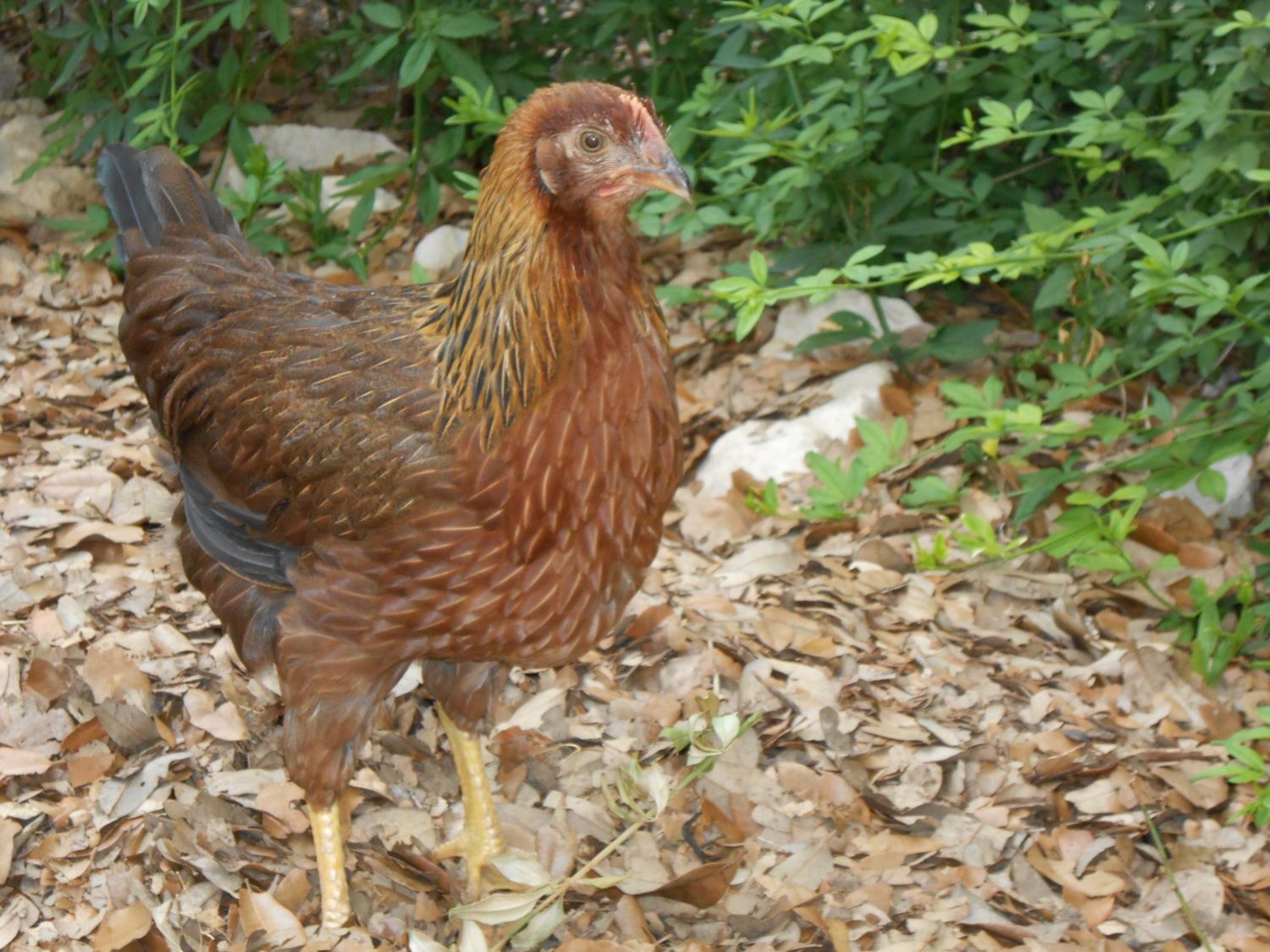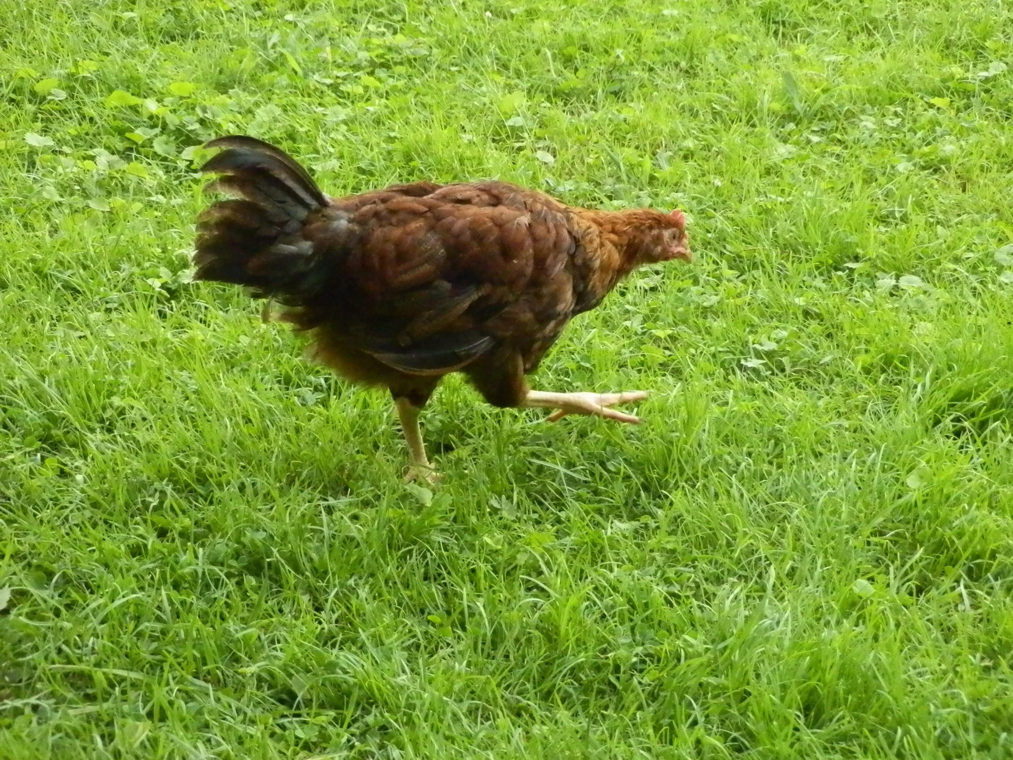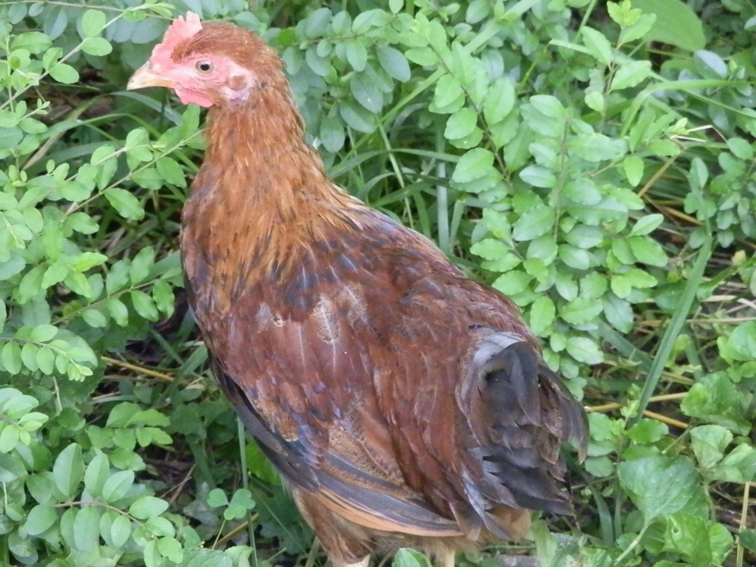 My welsummer/rhode island red is going through an early moult, she is losing here feathers underneath and is broody also. Not a great combination as she is not laying and is stealing my other hens eggs. I have two new additions to my flock, a welsummer/light sussex and a black rock or bluebell. (not completely sure as the breeder didn't know either) My newest welsummer is called lotty. The black rock is called hatty.