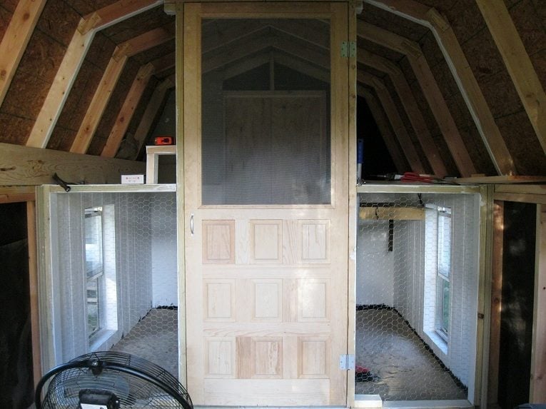 Hubby says don't insulate, but I was thinking it would help to insulate the ceiling since there is so much of it. My coop is barn shaped. I've already painted the chicken side of the ceiling with porch paint to lighten the inside. (I love that stuff)