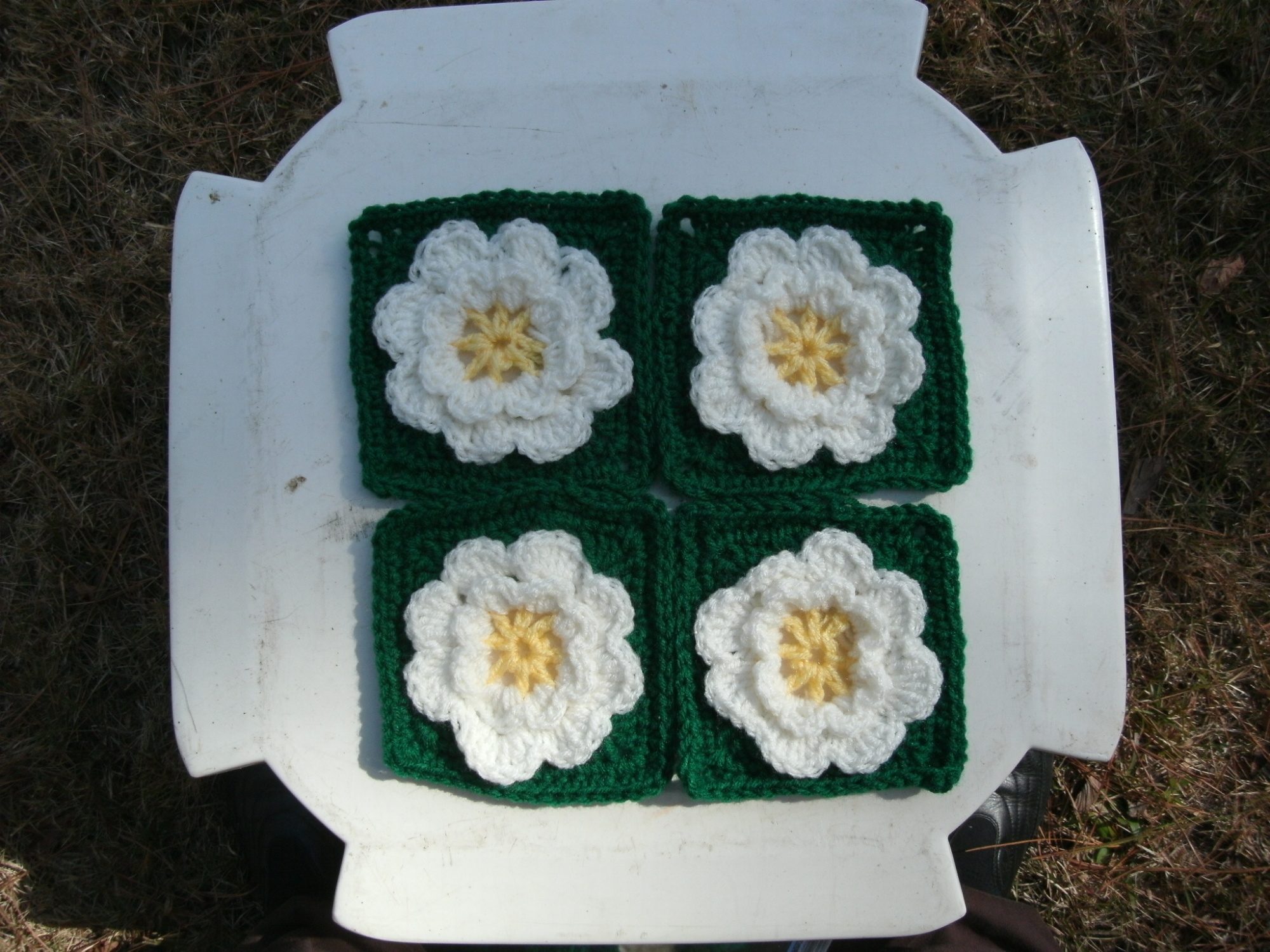 I'm in the flower swap, my first success with 3-D crocheting. I'm pretty pleased with how they're coming out.