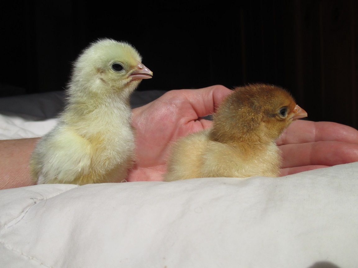 They are so cute! I'm really glad I got a couple of blues. The very, very dark one is quite small, and I suspect that is a girl. I've raised two batches of chicks, and the tiniest chicks in the other two batches were girls, so I'm betting this munchkin is, too. Now I have to decide which and how many I want to keep. Decisions, decisions.