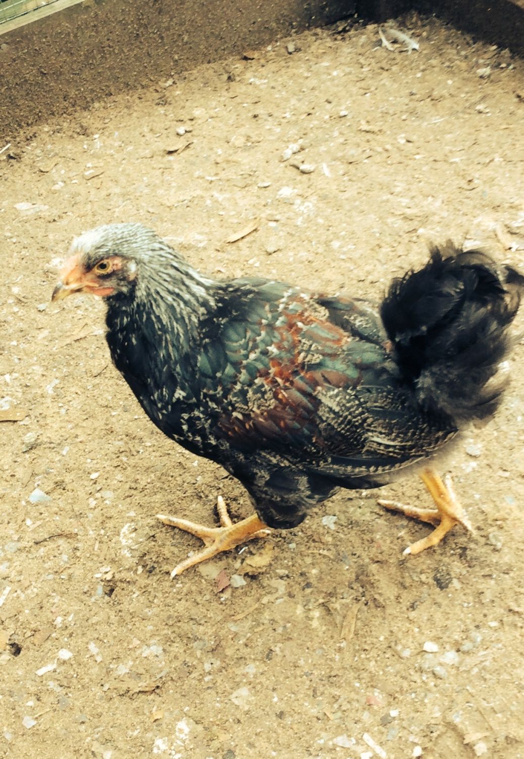 Ok Wyandotte experts, I need help with this birds ID. He came from a Breeder which I won't mention and was supposed to be a pure bred. I sent the breeder this pic and he claims not to be able to tell from this photo. I don't think he wants to admit I may have been shipped mutts. Some people think it may be a cross between two different Wyandotte colors? Lots of greens and reddish brown mixed in. When he was a chick, people speculated SPW. Thoughts?