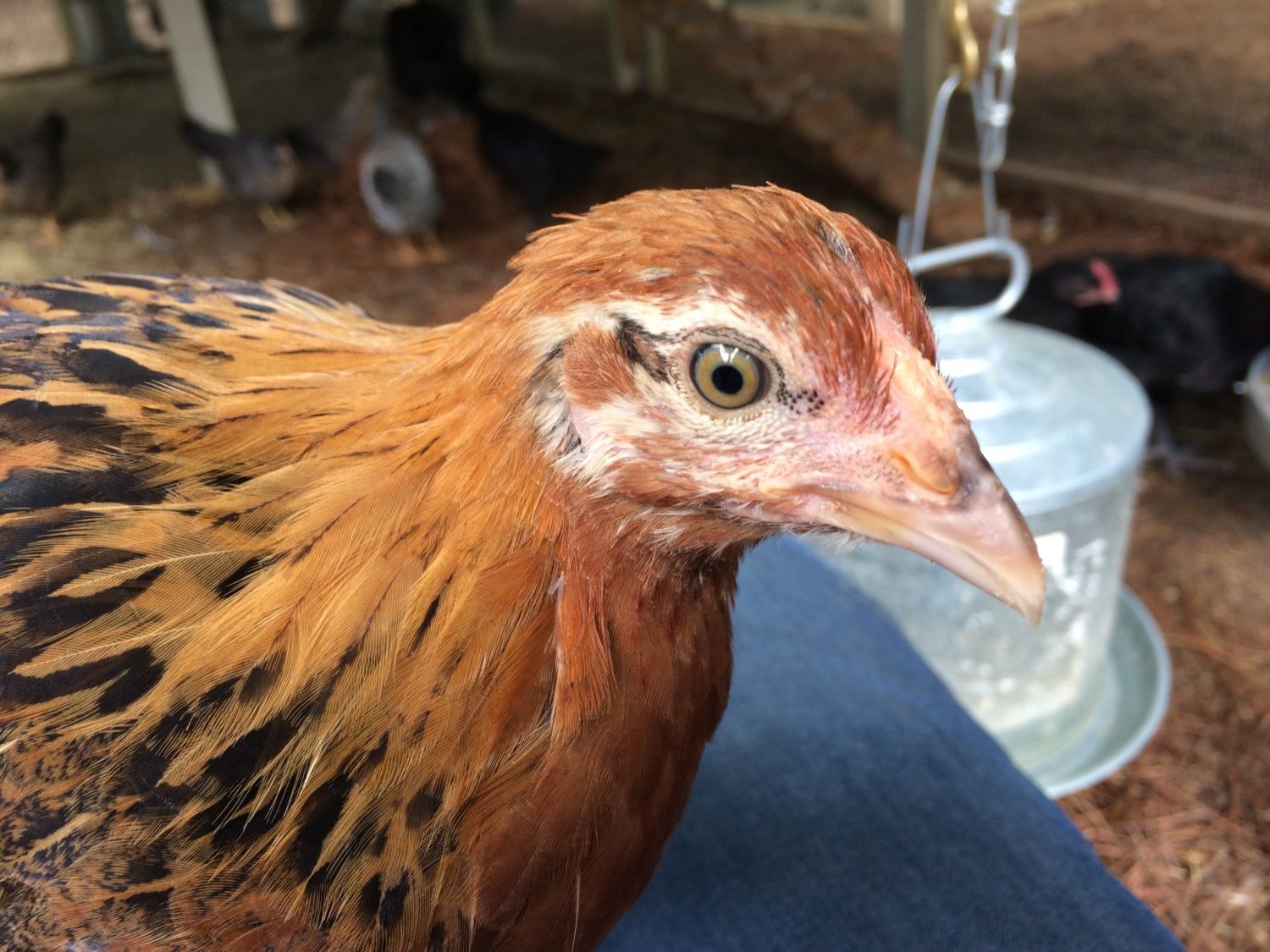 Uhh ... are those legs and feet blue? My overall initial impression is pullet, but she doesn't look like a Wyandotte.I have a chocolate partridge Wyandotte that came as an extra with an order from Greenfire. I haven't been able to find out much about the breed but I can say it is my all time favorite. So sweet, comes up to sit in my lap - not sure if it's male or female. Anyone have any information or insight? Male or female?