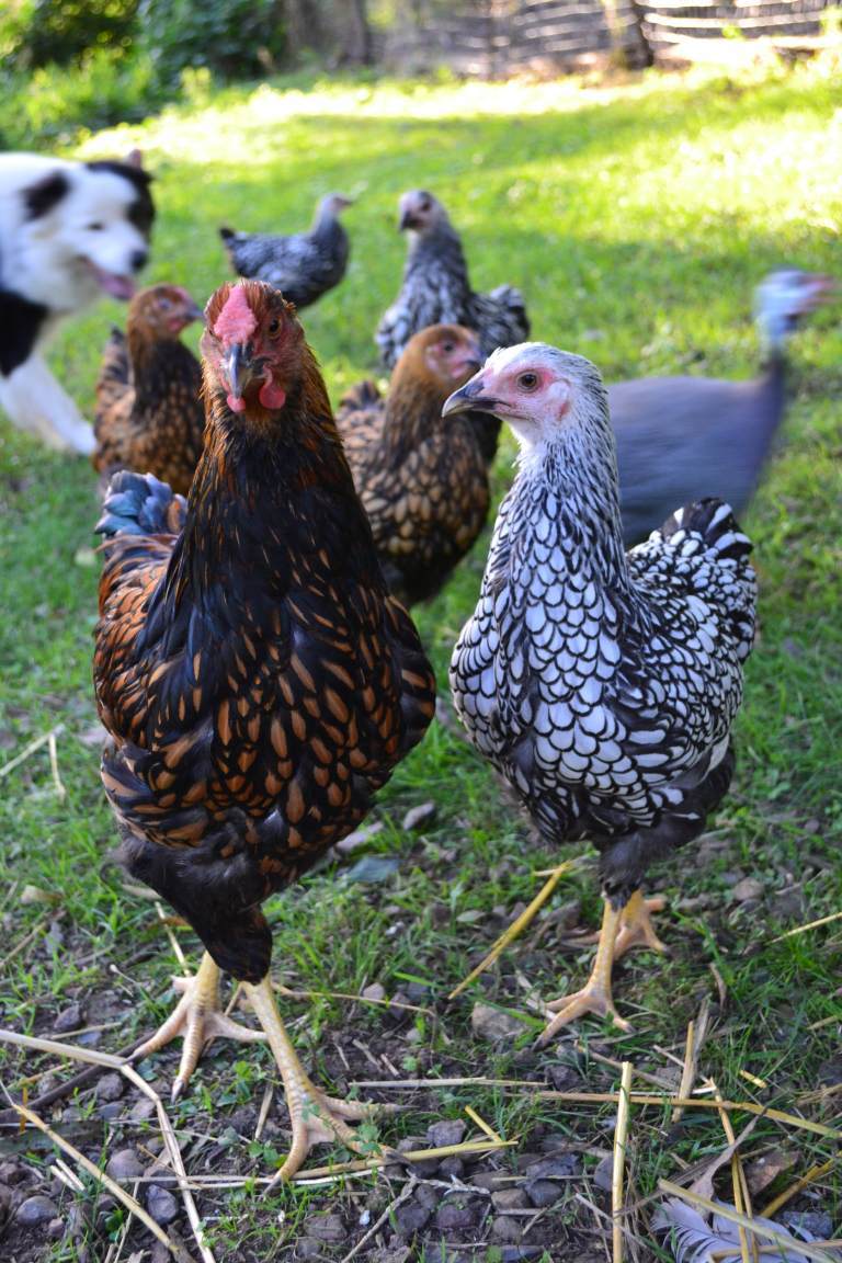 Fancyfeathers that is some of the best lacing I have ever seen. Are those Large Fowl or Bantams? Even with the dog in the background, I can't quite calibrate my eyes.