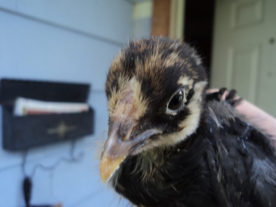 It has feathered out the fastest and has slim legs though...but definitely a red comb already and defined wattles (at just over 3 weeks).
