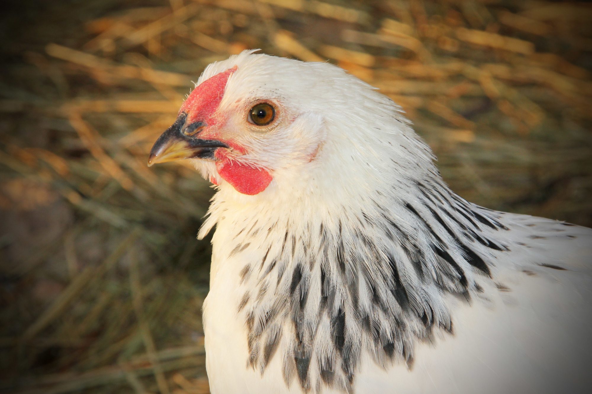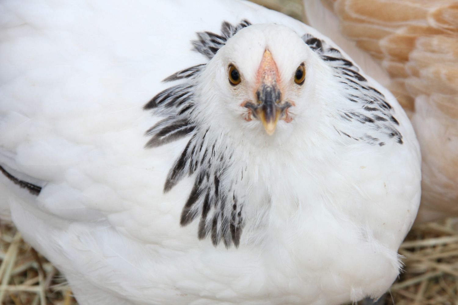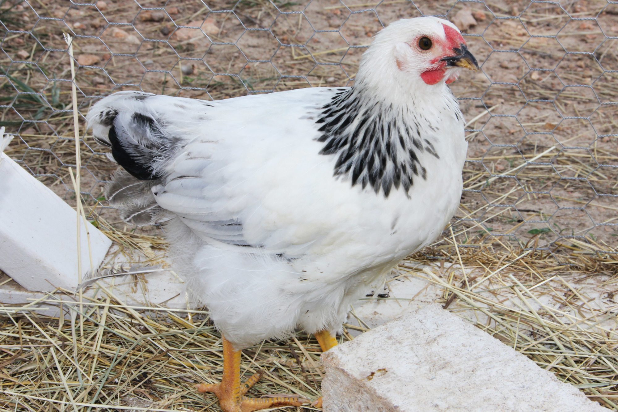 Here are some pictures of my two columbian wyandottes. I am starting to think that one of them is going to be a rooster. They were both supposed to be pullets, oh well. They are the same age and from the same store. They are both 12 weeks old.