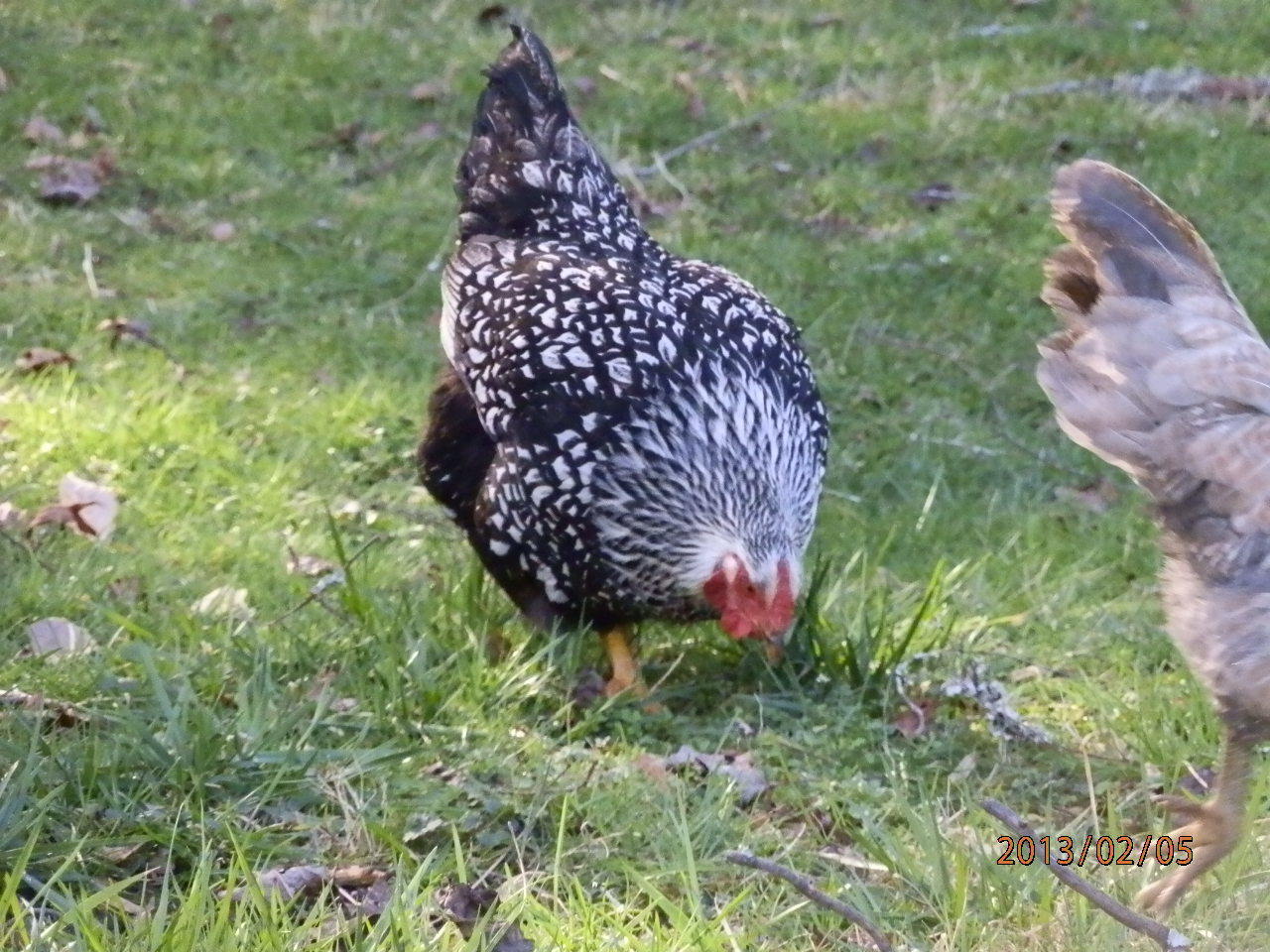 When I decided to get chickens I knew I wanted a SLW. I have a mixed flock of birds I find pretty, I have chose them for feather and egg color. I don't plan on showing or breeding, but I think Mrs Pots is just as pretty as can be. My 8 yr old son said she looks like a cake and my 11 yr old daughter said she looked like a old lady. She has the sweetest personality and has to be shooed in the hen house every evening.