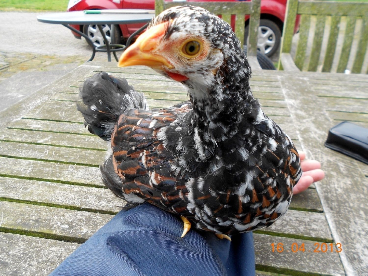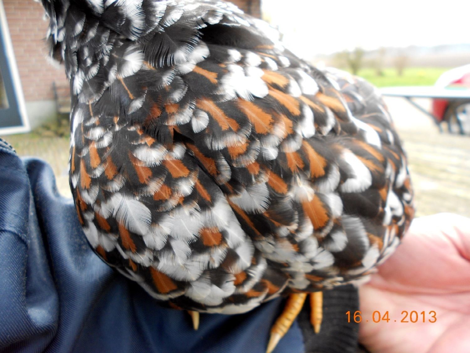 Over the past few years several members have been asking about Tollbunt Wyandottes. Following the recipe given by the Dutch geneticist Sigrid van Dort [COLOR=0000FF]http://www.chickencolours.com/pagina11.html[/COLOR] I started the project to create Tollbunt Wyandotte in 2010, beginning with red mille fleur X black laced red Wyandottes. Now, 3 years later, I’m happy to show some photo’s of one of my Tollbunt Wyandotte cockerels (large fowl, hatched 2/16/2013).