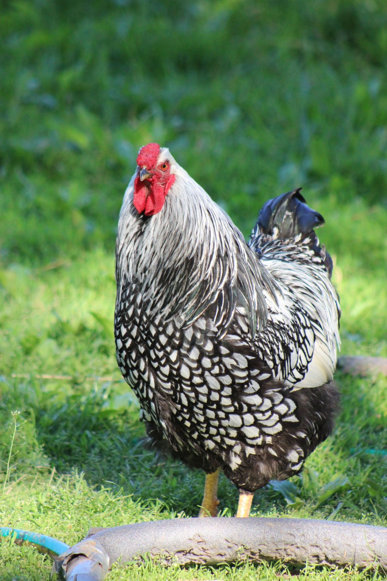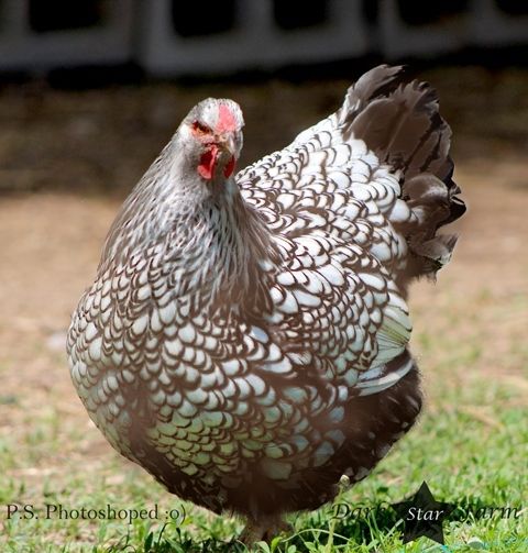 Comparison of size next to a good sized adult hen