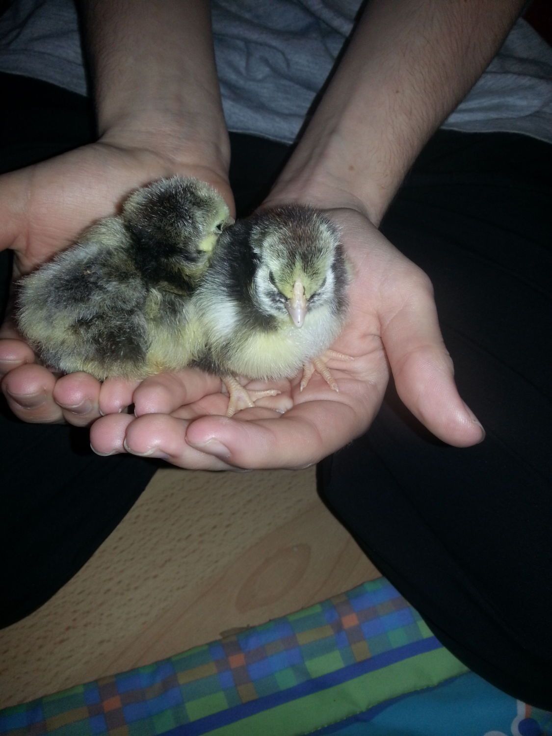 These are our 2 sliverlaced chicks...2days old...