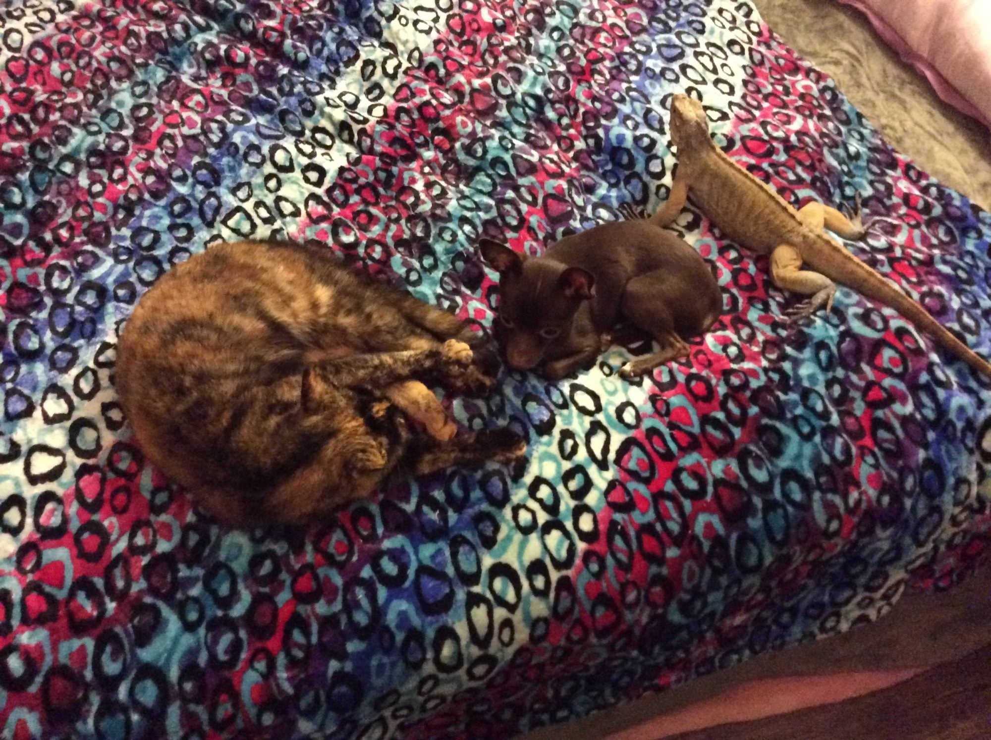 Awww! My lizards would probably bite my ear if I let them sleep with me...