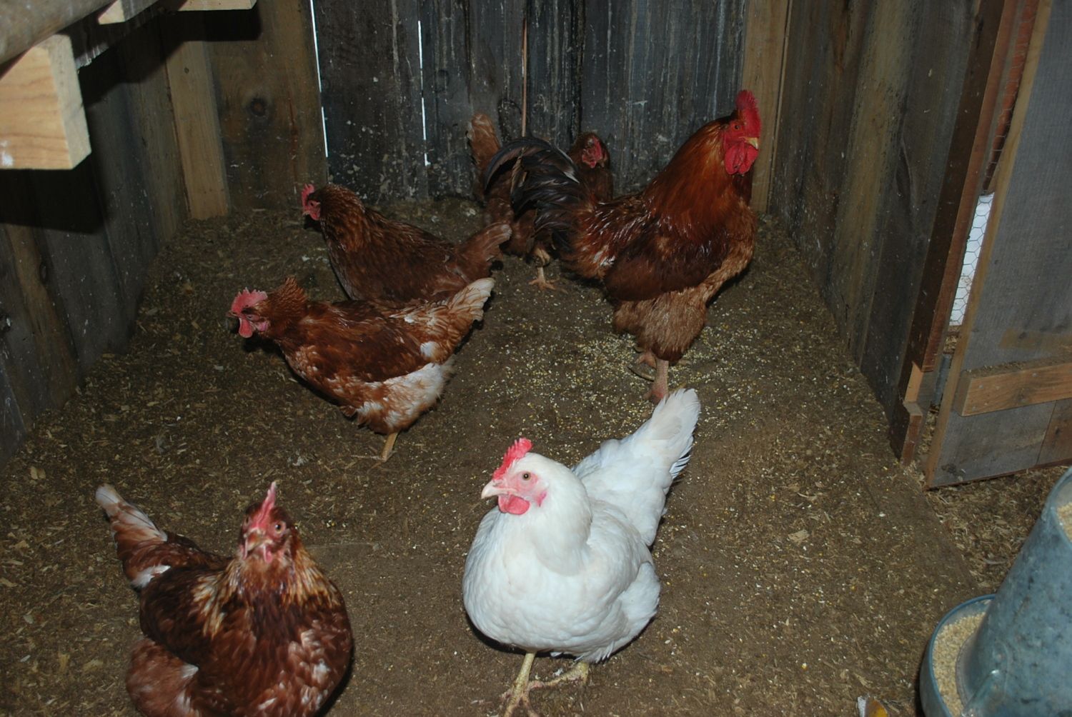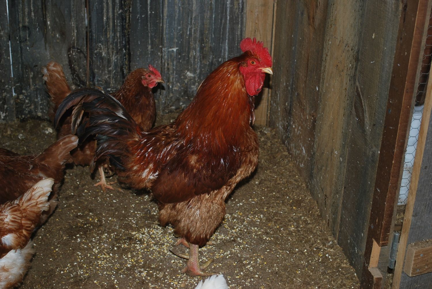 It's kinda sad, but I don't even know what breed my chickens are. I think they are RI Reds. Not sure what the white ones are. I also don't know what breed my Roo is. Maybe someone can help me out. I will post a pic. I do know that the eggs are fertile, and they are developing nicely. They are very difficult to make out the veins, I can only see the size of the dark mass grow, due to the eggs being a dark shell. The reason I know they are developing is because I found one that looked like it had made the least progress, it was kinda dirty, and the shell was porous and dark, so I took a chance and cracked it open hoping to see nothing but a normal yoke. But no, the embryo was there with the veins and what I think was the eye. I felt so bad. I will never do that again.