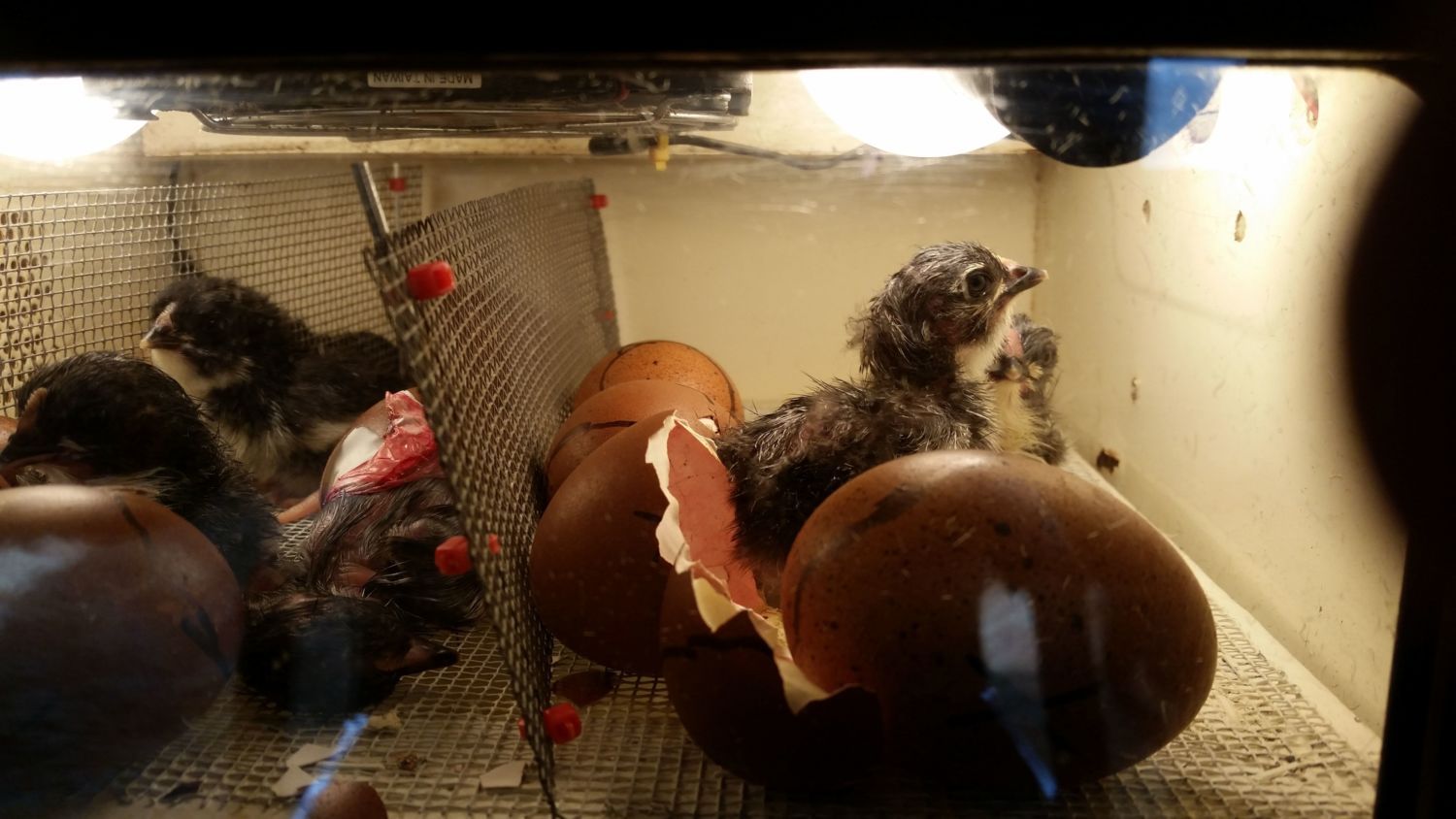 Yes it is hatch day 6 out of 12 so far three others have pipped one of them that is hatched looks very week. I'm running two 40 watt__ what is sold as 40 watt light bulbs on the package it says 29 watt actual usage. That way if one bulb burns out while I'm at work not All Is Lost it has happened it does cause warmer and cooler spots in the incubator but not All Is Lost. Make sure they are connected in parallel not in series your husband should understand. The old cheap Christmas lights are connected in the series if one burns out they all go out if that helps you to understand.