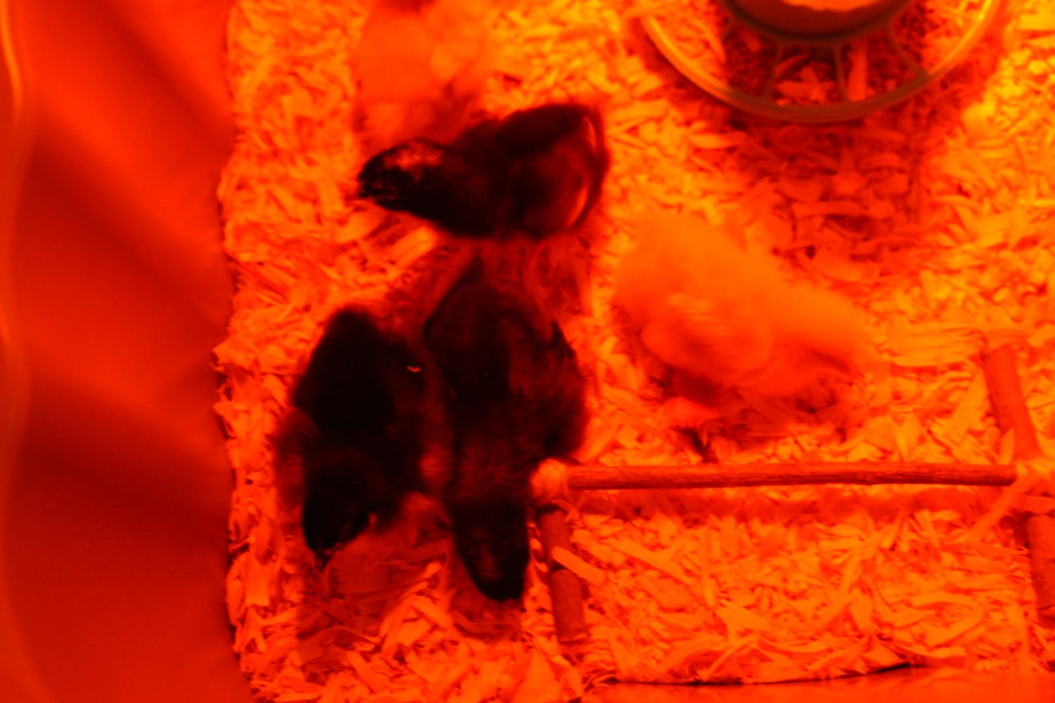 My little Australorp might be the least mature (feather-wise), but she is the first one to sleep on my little training roost! The others are just sacked out all over the brooder, haha. The Barred Rock next to her is using it as a pillow.