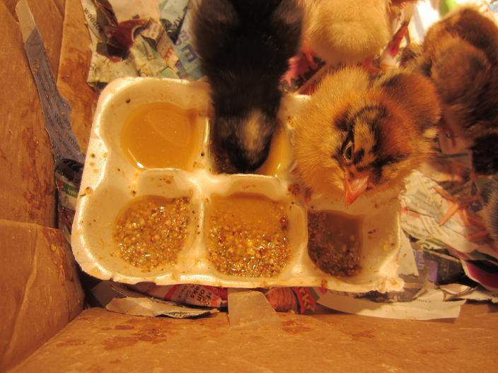 Chickies eating some fermented feed, they couldn't get enough!