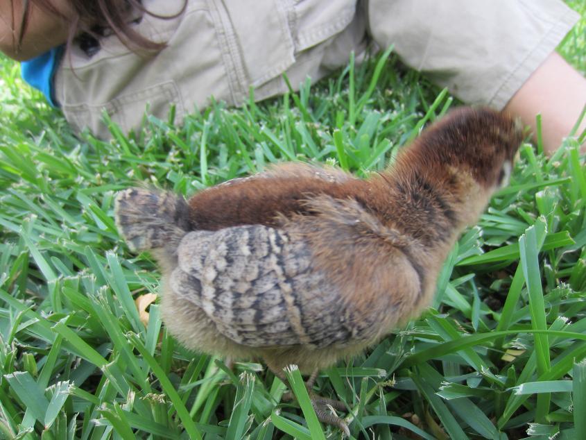 Edited to Add: In case you might be wondering, it is really hot here, so we have taken the chicks outside for "adventures" already, since they were 4 days old. It is actually hotter outside than in the brooder! That's why the pictures are in the grass.