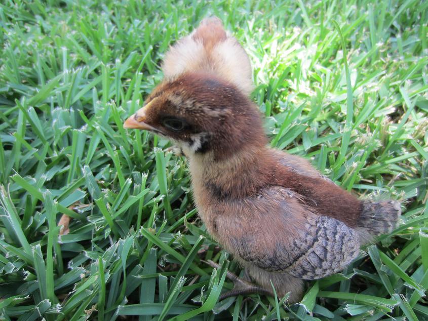 I think so too! They are certainly a couple of beautiful gals. Autumn, the darker one, is very bold, not shy at all. She is the only one who showed NO timidity when we first took them outside, the only one who doesn't cheep even the tiniest bit when she is picked up, and also the one who usually instigates all the mischief!