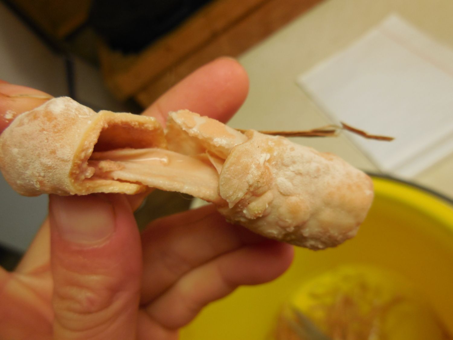 I've worked with layers for 5 years both commercially and on the backyard scale. I have never seen anything like this. I'm just curious if anyone else has. First two pictures are of the deposit, in tact. The following pictures are of what the deposit looked like upon cutting it open. The inside also contained a milky pinkish fluid. Has any one seen anything like this before?