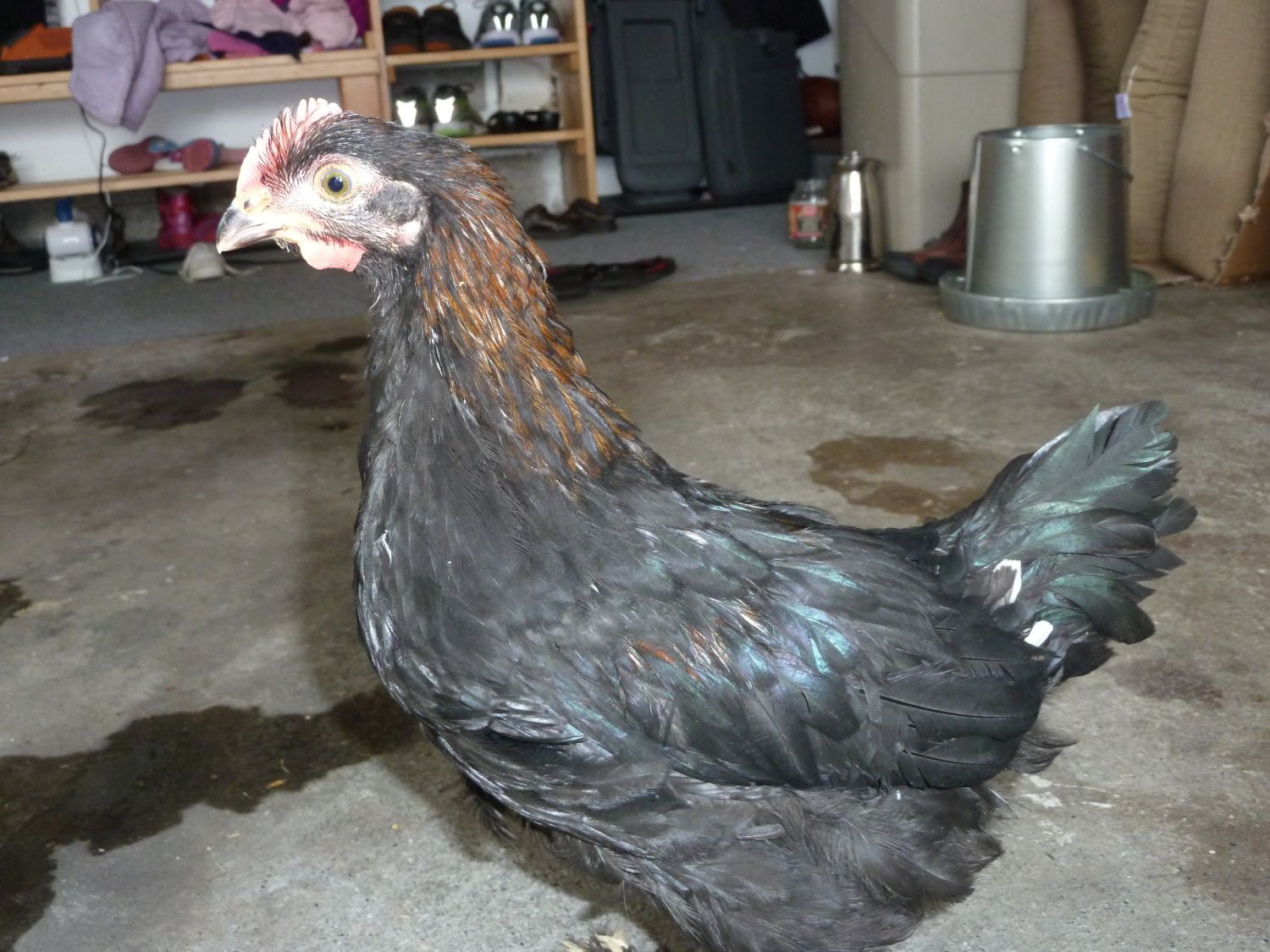 Hi, new to this website :] I'm really worried though. I have 8 chickens including a very rare one. [French Copper Maran] I didn't know that it was straight run when I bought it though. It's bigger than the rest and has a huge crown and waddle for it's age. [they call it a waddle on a turkey but what on a chicken?] I read online that the roosters have a greenish blue sheen which is what she has. When the sun reflects on her feathers it's super beautiful. She hasn't crowed yet, and I'm not sure how old they are when they do. She's a little older than 8 weeks. If she is a rooster do u have any ideas where to take her. I live in tacoma Washington and I'd want her to be close so I could visit! Thank you! Picture is of her.