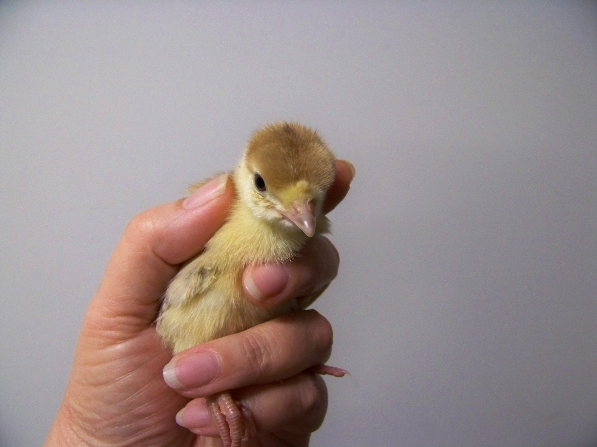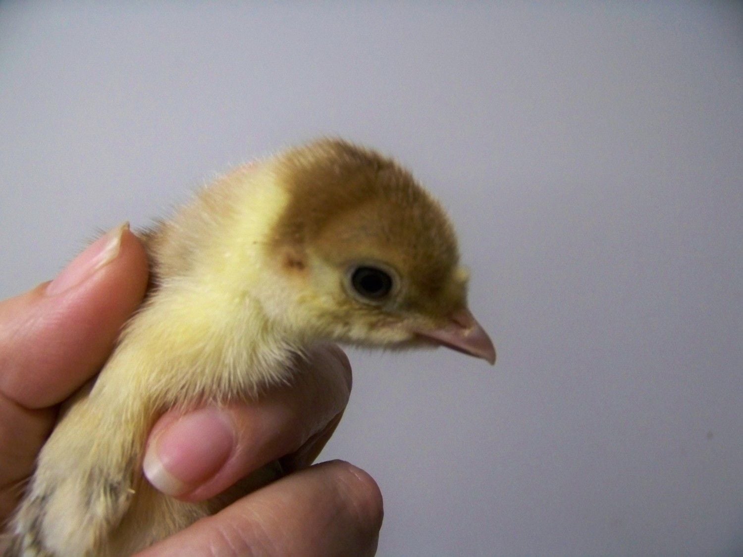 I have become an expert at resisting the sirens call of chicks and can even look at them without being tempted, so when I heard the peeping as I walked through the door, I was not concerned. I walked over to the brooders and peeked inside. There was this one that stood out. I kept looking at it and it moved differently and sounded different. Then I saw a snood!
