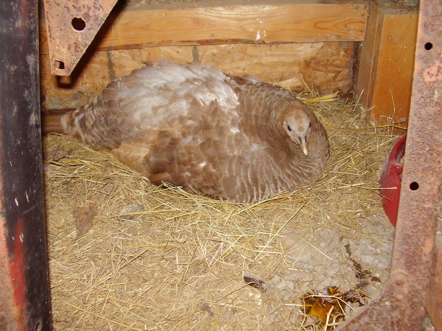 As for how many chicken eggs. Both times she sat on 20 turkey eggs easily (I couldn't see any sticking out). I would say 25-30 chicken eggs should do itBut if you don't want that many chicks raised, I'm sure she'll happily sit on fewer.![]()